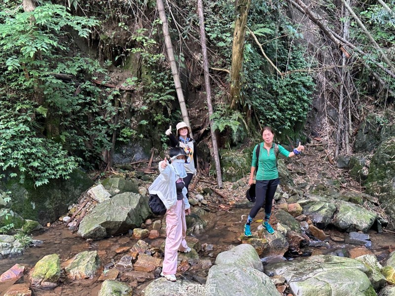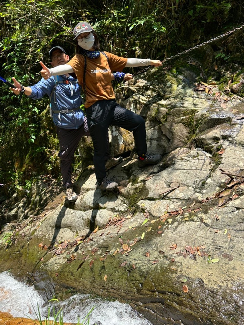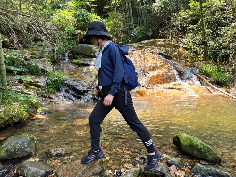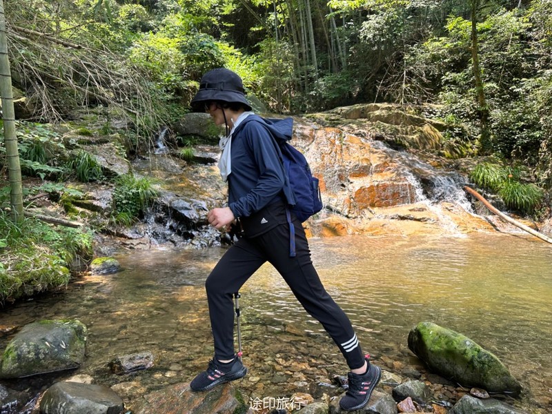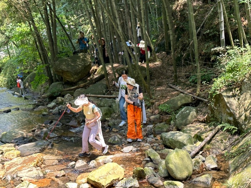 大巴送我们到了绍兴太平山,下车后我们还比较担忧,因为今天天气很热,原计划今天路程比较长,爬升比较多,路也比较难走,但一走进峡谷,这个担忧就消散了,峡谷里非常凉爽,加上我们是在溪边沿溪而上可以一路玩水,所以一点都不觉得热。这条路线环境非常好,也很原始,但伴随着的也有一点危险。因为在溪流边湿的石头比较滑,部分路段因为很陡,当地村民在地上打上了钢筋,这样更方便行进。我们在幽深的峡谷里行走了近2小时,然后穿过了溪流,又沿着森林爬升了一段,来到了一个水库,再走一小段就到山顶了,这里是一个村子,还有一个超市,可算是及时雨了。这时的冷饮感觉格外好喝。休息一段时间后我们开始下山,先是一段公里,然后从一个缺口处开始小路,走了一段比较好走的路,我们来到了一个废弃的采石厂,我们从旁边下去,这里的路比较陡。过了这段就是宽阔的机耕路,然后走到柏油马路。再走200米就到了集合点返程上海。