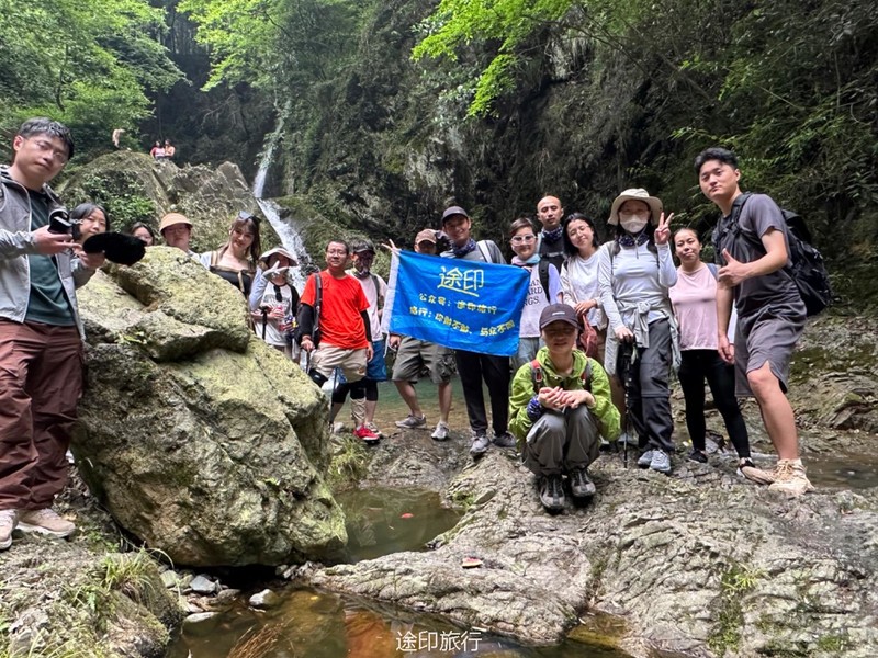大巴送我们到了徒步起点:石门村,右拐上山,开始爬升,这时左手边是下鲁瀑布,不过到瀑布边的路已经长满野草,经过一阵爬升,我们终于来到燕窝村,大家纷纷表示不休息,继续往大岭岗进发,这里可以看到余姚市全貌,又一个很大的亭子大家可以休息吃中饭,旁边还有一个地下水口,很多当地人拿了桶来接水。水还很清凉。我们午饭后继续出发,沿着燕窝古道经过艰难徒步到了紫龙庙,接下来就是一路下坡,周边的环境也非常好,大家都走得飞快,很快就到了公路旁,继续走一会儿就到了龙门石潭瀑布。这个瀑布比较小,分成两段,很多当地的人再这里纳凉洗澡。我们简单休息一会儿再走了一小段路就回到了石门村,完成了这个11公里,爬升580米左右的环线。