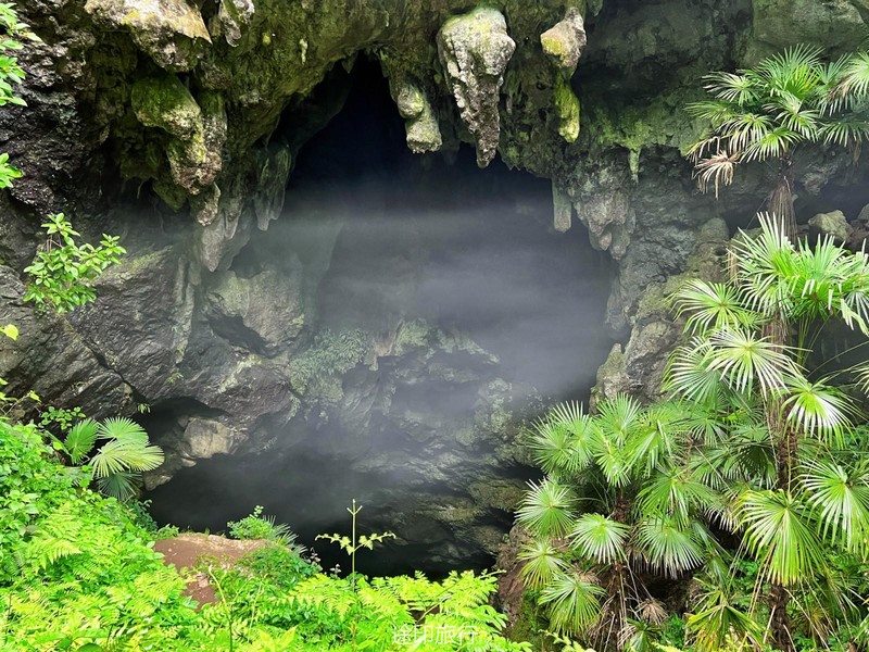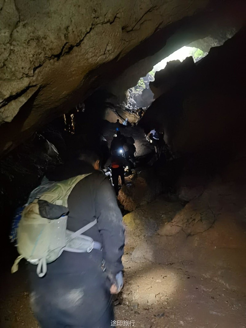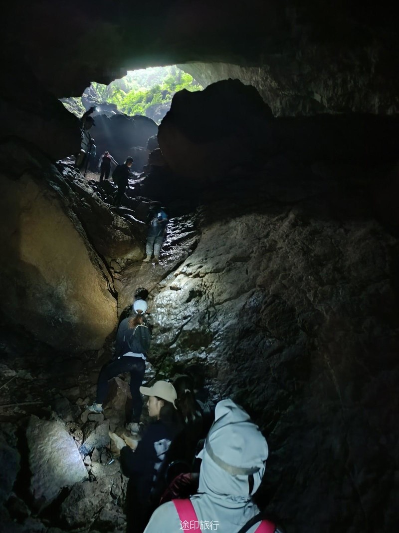 休息片刻,集合队伍继续出发,约莫十五钟,经过一片茶园,慢走搜寻,很快今天目的地,世外桃源“仙入洞”映入眼帘,只见约20米高得巨大洞口,被茂密的绿色植物覆盖,洞顶不断有水流形成水帘,洞口云雾缭绕,仙气飘飘,挥之不去,真的不愧“仙人洞”的称号,人群中开始尖叫,集合集合,再次交待注意事项,重点团队配合,出发下洞……