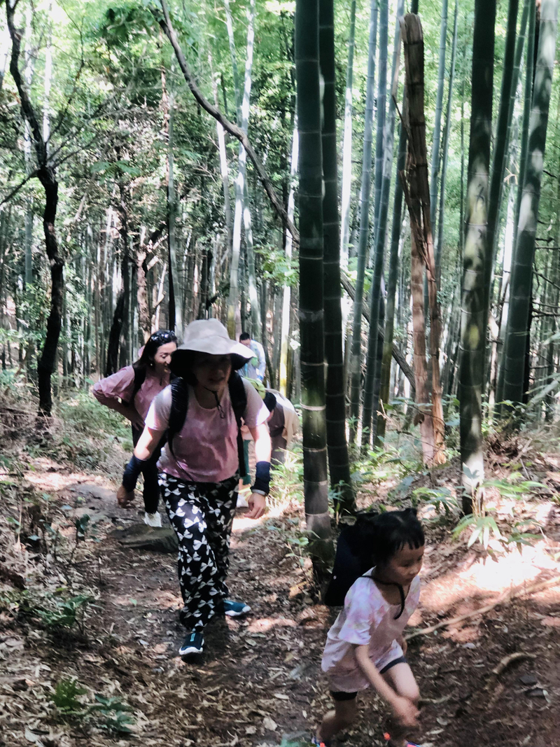 本来体感温度就比较高,再加上爬山,大家都是汗如雨下,由于天气潮湿,树林中也多了一些,穿长袖的小伙伴避免了蚊子叮咬。这次我们线路有很多小朋友参与,虽然对于初次爬山的人来说有些难,但是大家都坚持下来了。