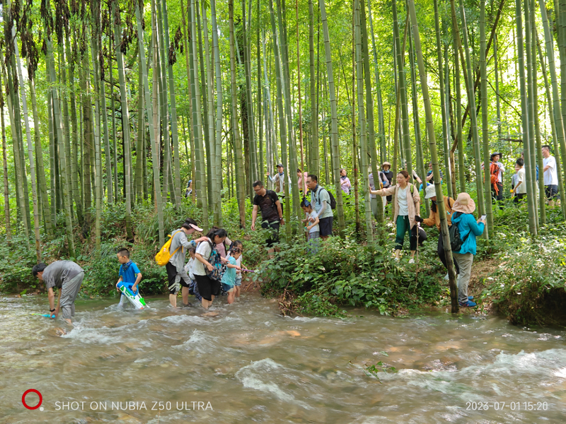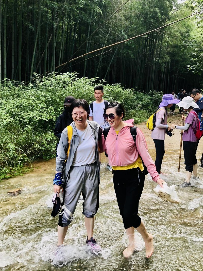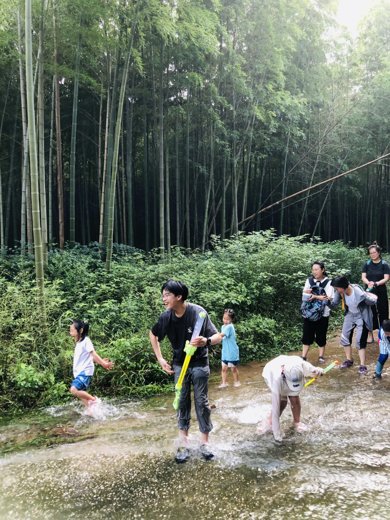 大家玩开心玩尽兴后,我们按照原路线开始返回至出口,沿途是竹林山路,不乏有水贯穿至全程,边走边踏水也不乏多了一些乐趣。