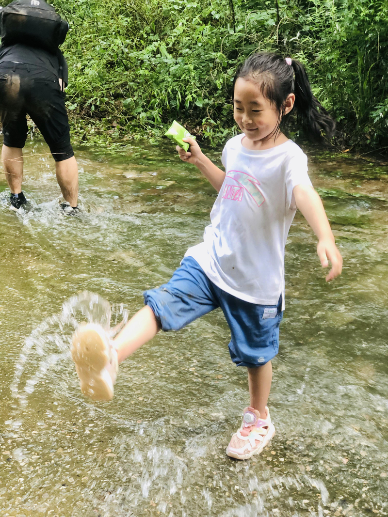 下山我们来到原本该走的溯溪部分,水很大、很清凉,打水仗、玩水枪必不可少,大朋友和小朋友都沉浸在玩水中,很是开心!