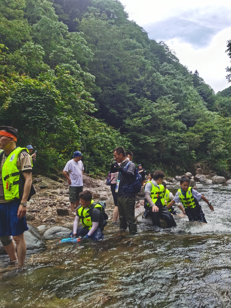 “抗洪抢险之势”溯溪穿越 蝴蝶谷