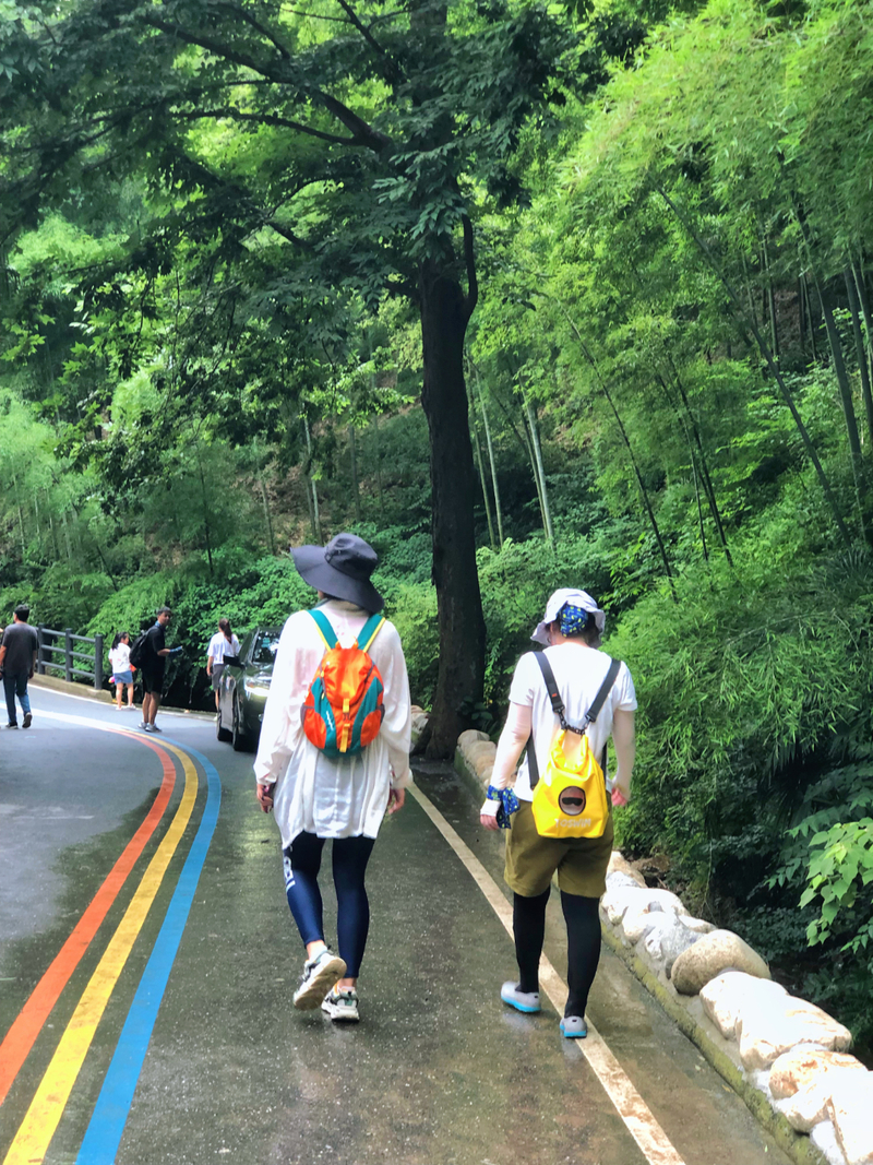 进去是一小段泥土路和石台阶,走没多久就能看到木栈道了,木栈道走个10分钟左右,我们到达景区里面的小瀑布,很多小朋友在这里打水仗,好热闹。