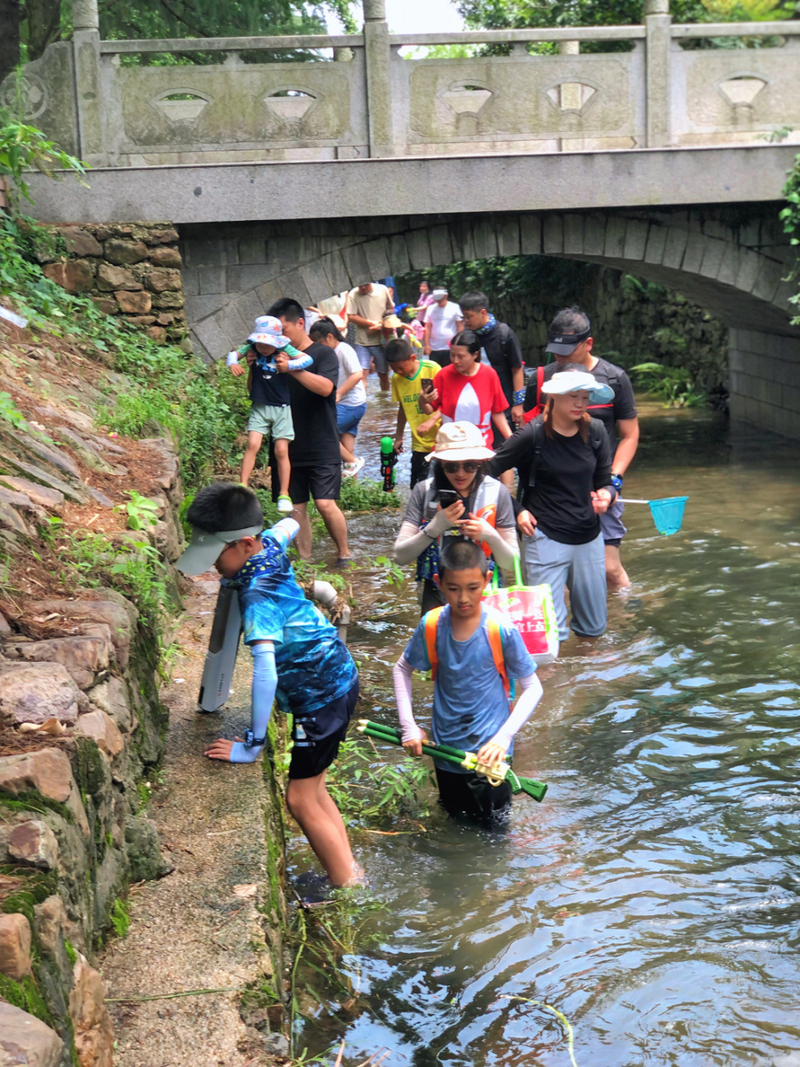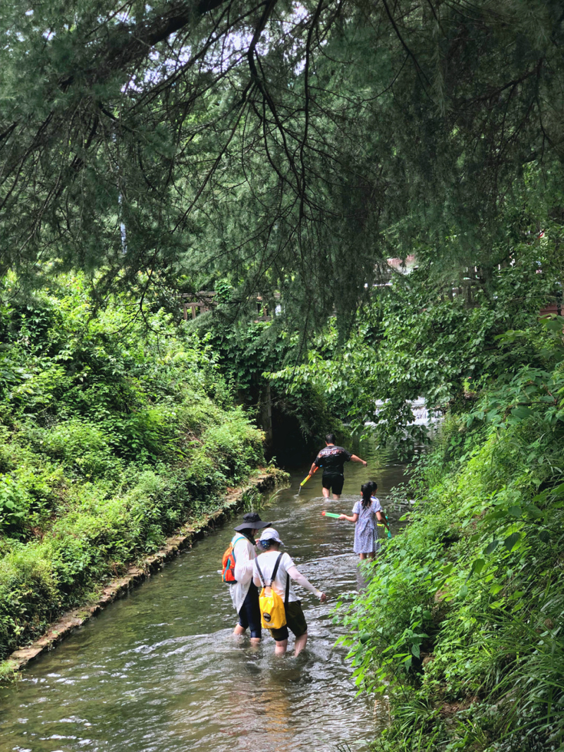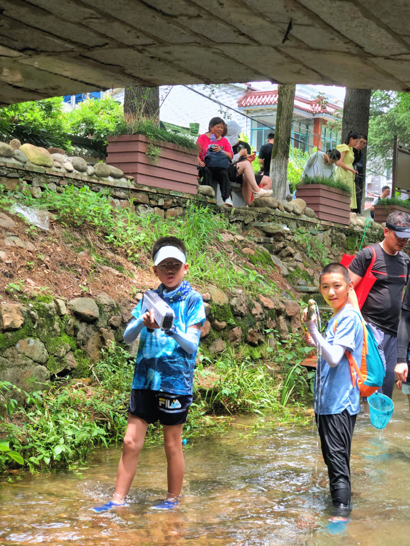 现在正是暑假的时候,大人小孩人都来到乾元村玩水过暑假。当然,我们下车稍事调整后,就迫不及待的下水。整个小溪清澈见底,穿整个村子长约2公里,最终通向一线天的入口处。小溪的边上还有步行绿道可以走,夏天树荫浓密,不用担心晒伤,非常适合小朋友。