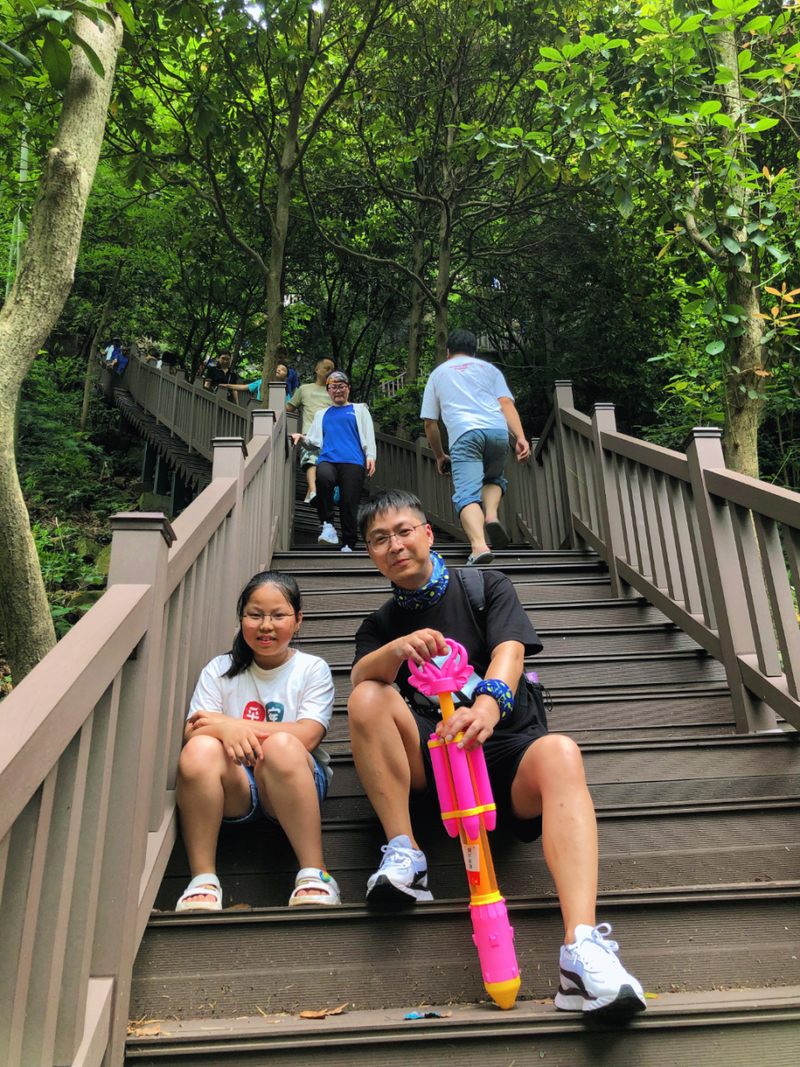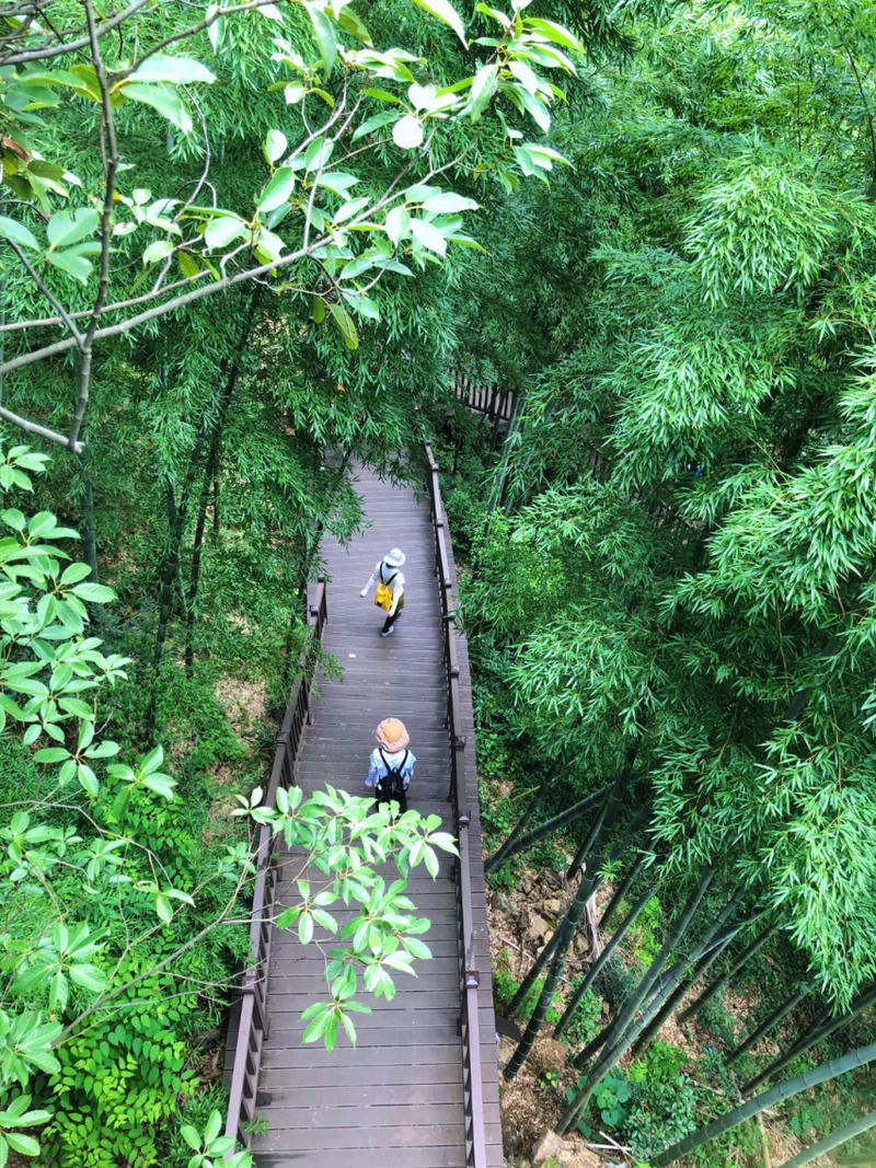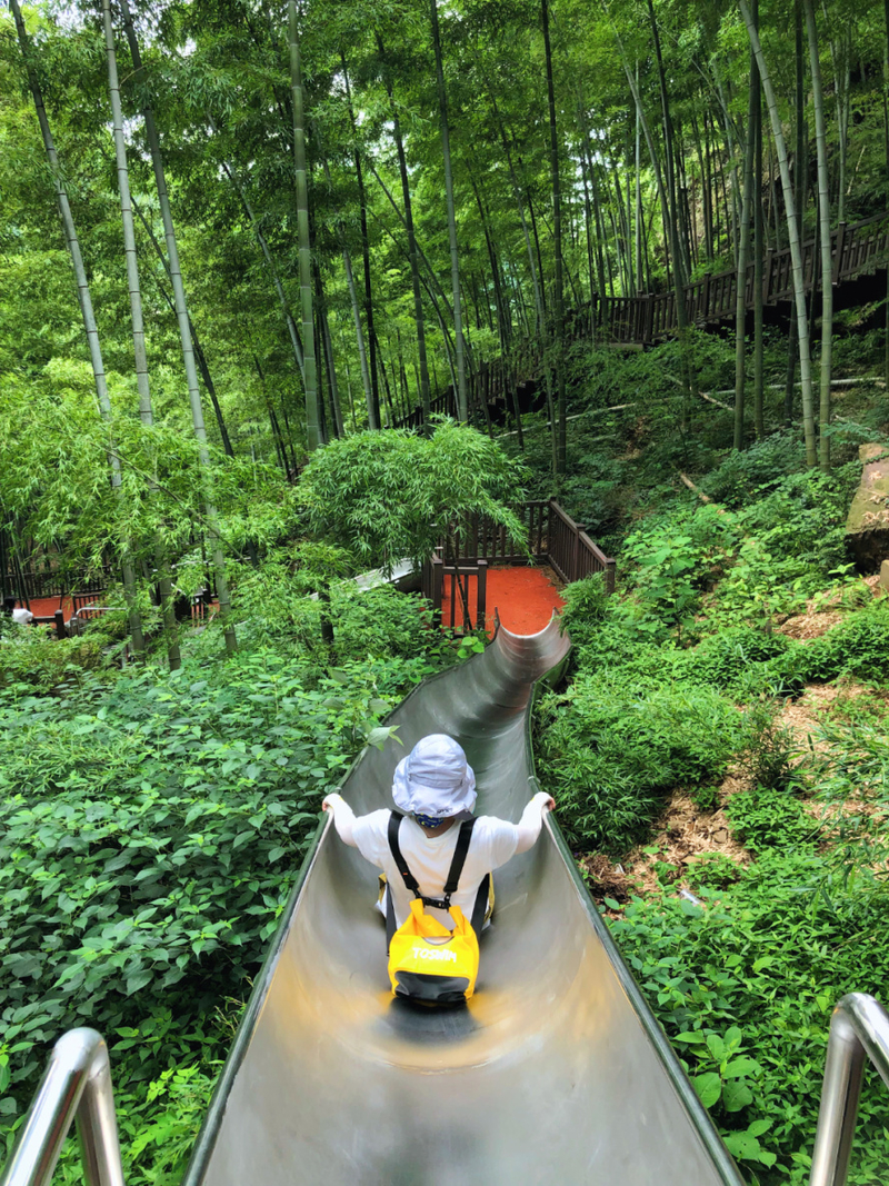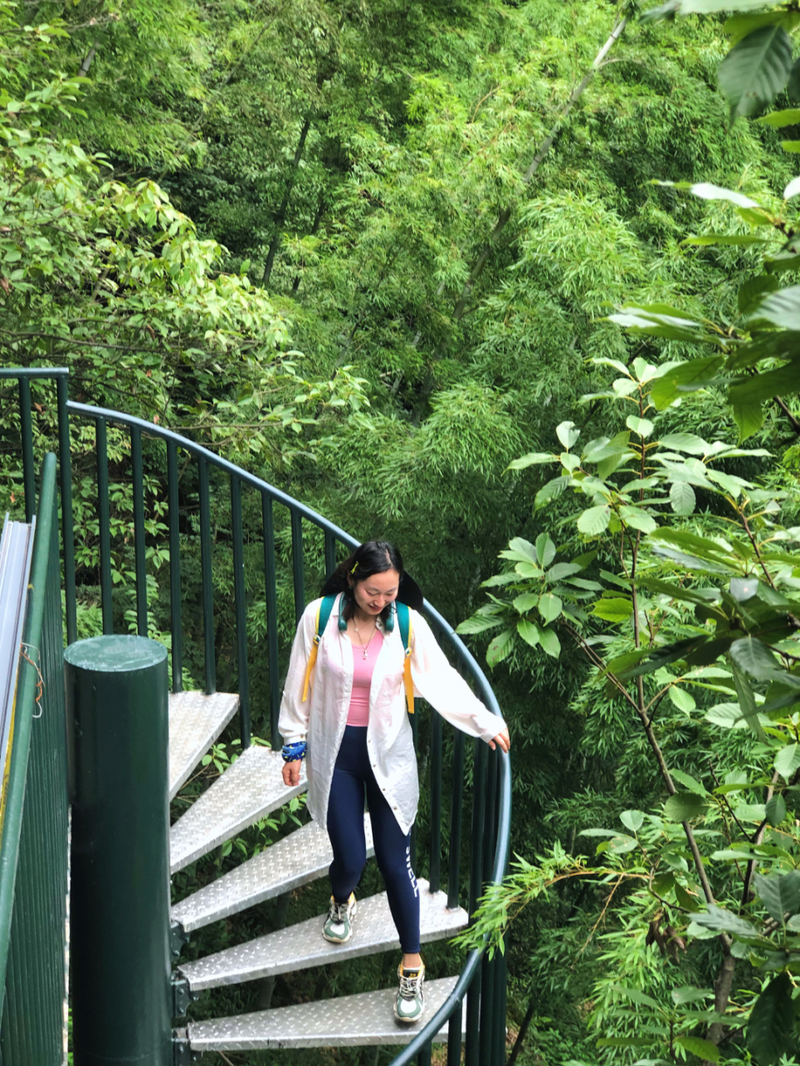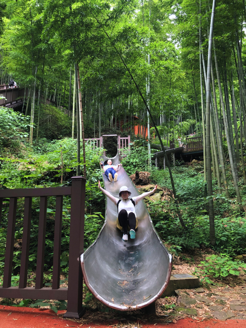 沿着栈道走,会途经凉亭、玻璃栈道,还有旋转楼梯,都可以打卡拍照。后面下山最惊喜的是滑滑梯,大小朋友都可以玩,享受一下儿时的乐趣。