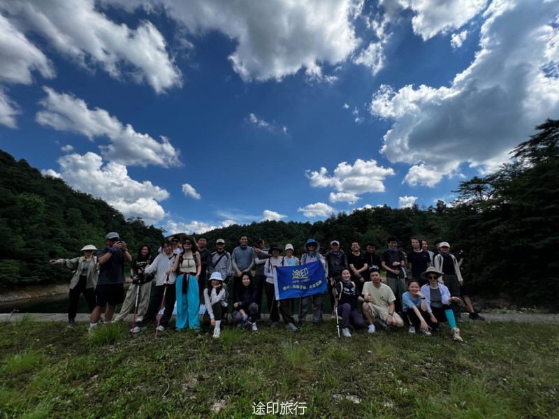 进入峡谷后,攀石穿瀑,可沿途玩水,树木遮荫清凉,两个路段有些挑战需要攀铁锁,过脚蹬,之后穿过密林和水库,到达山顶大山村,在便利店停留,下山经过采石场,最终回到出发点,全程五小时左右,当天(7月15日)天气晴朗,风光秀丽,兼顾“特种兵”式徒步和欣赏风景拍照。