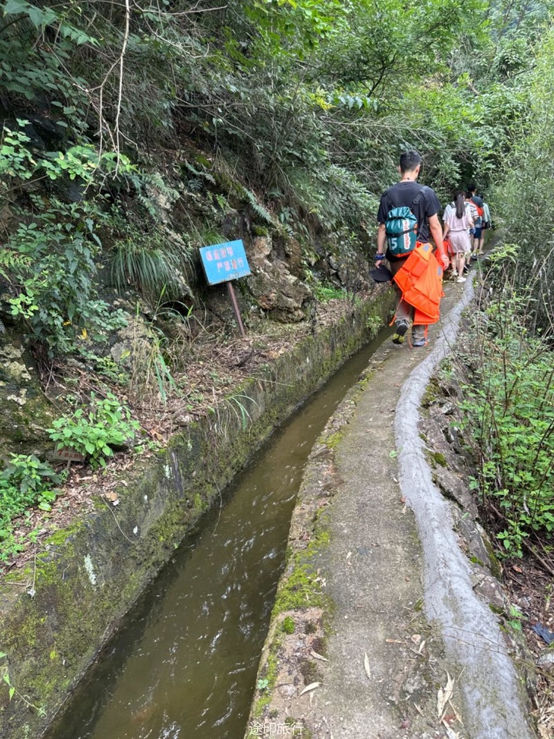 导航到毛坦村,注意哦,大车可到不了这里,比较狭窄。然后开始在竹林中上山,大概还把,提高100米。然后就来到一条引水渠,沿着水渠大概走15分钟。