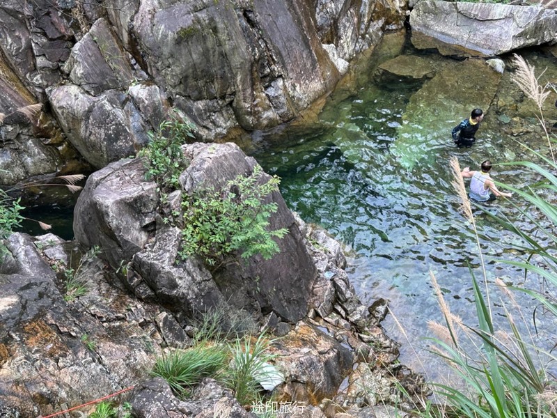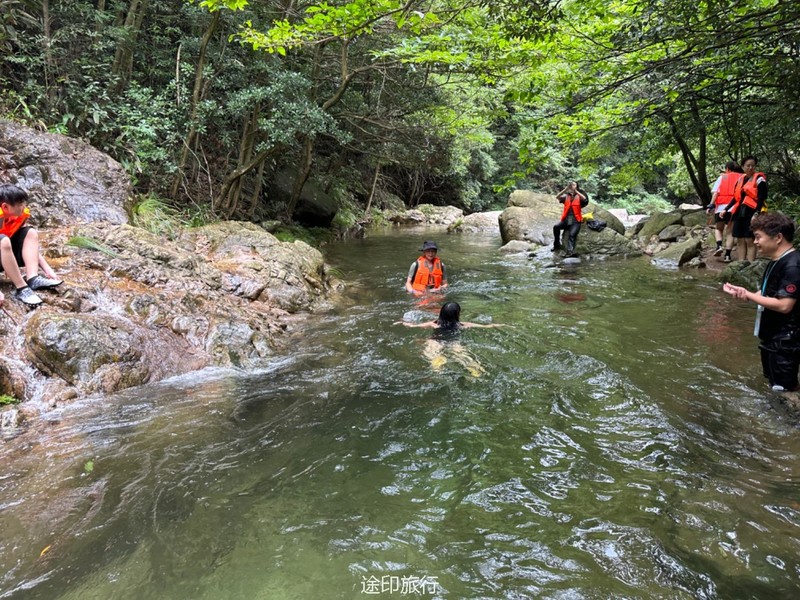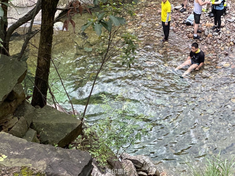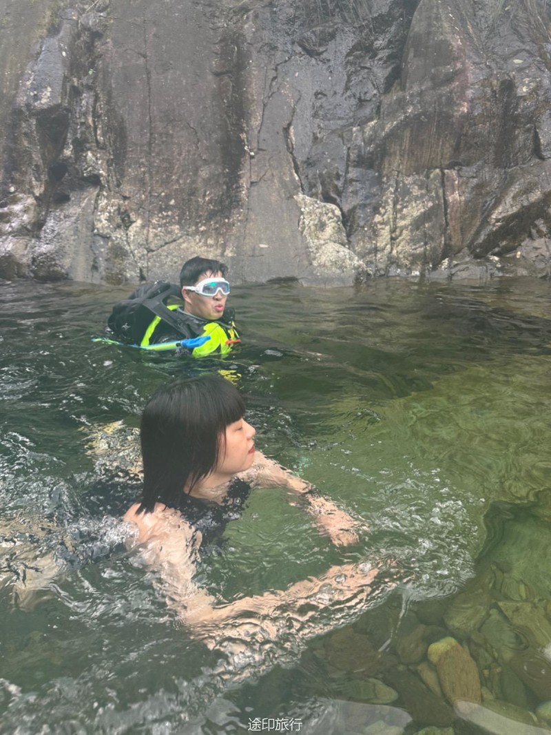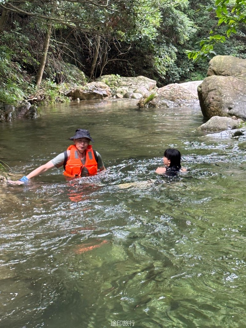 沿着河床继续溯溪,在河中继续穿行,可以玩水,可以游泳。