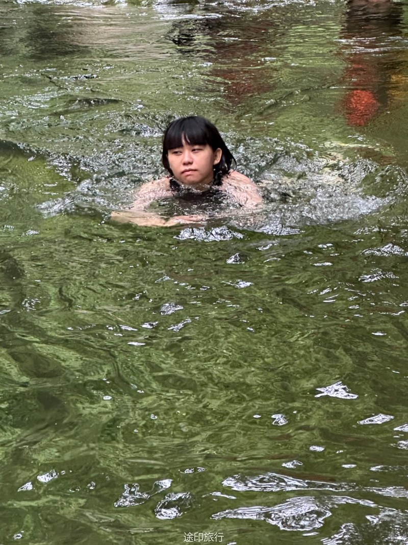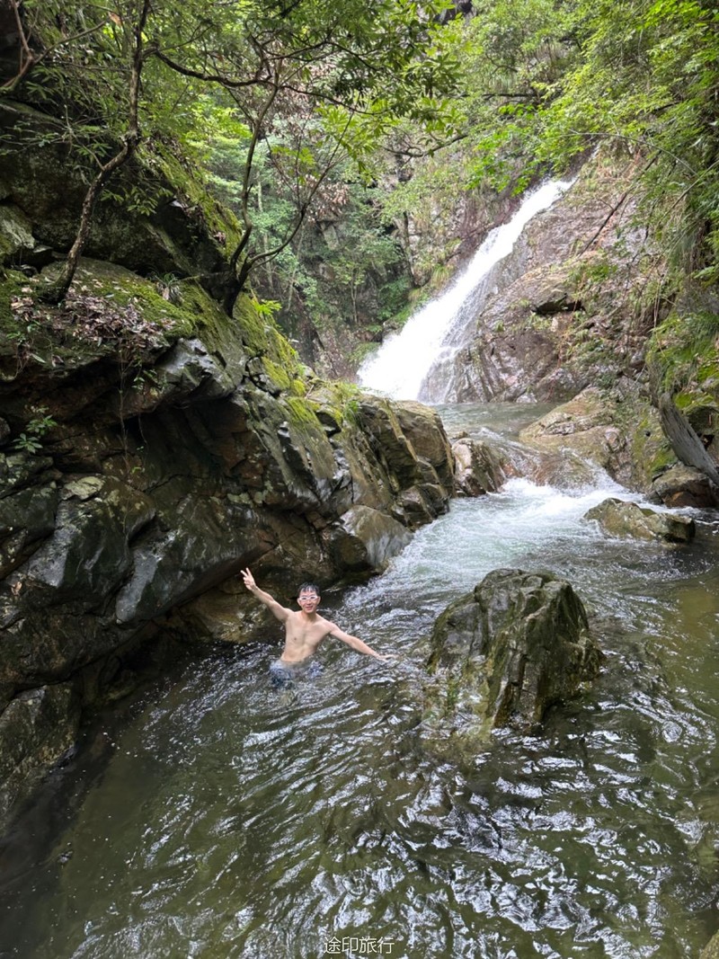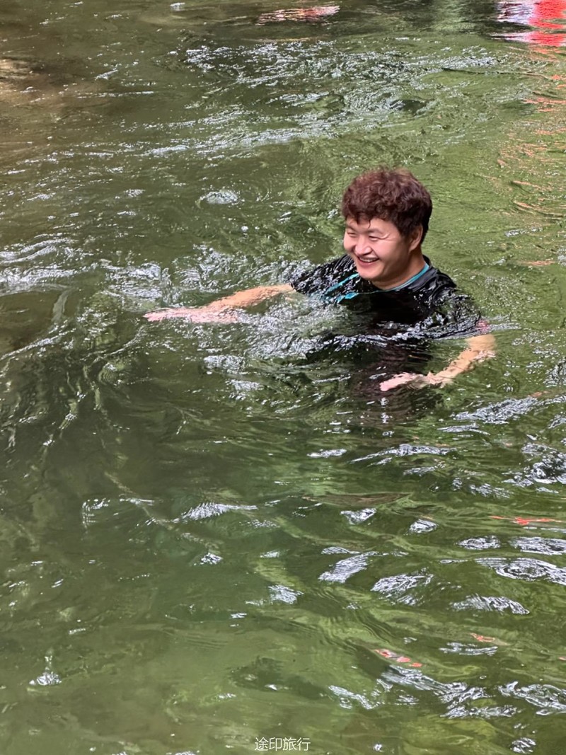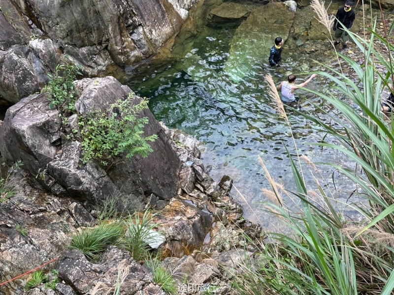 沿着河床继续溯溪,在河中继续穿行,可以玩水,可以游泳。