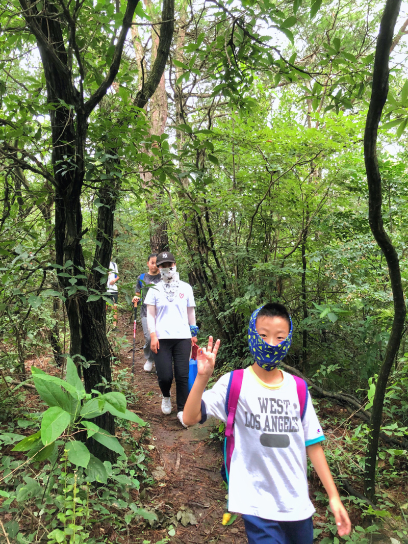 上海出发后大概11点左右,我们来到了徒步起点:南岳禅寺,稍作调整后,我们开始徒步。其实刚开始的这座山是南岳山,与铜官山相连。山路的行程大概1.5-2小时;爬升300米左右,上山比较平缓,下山部分路段会比较抖,会滑,加上最近雨水比较多,为下山更是增加了一些难度,在过程中提醒队员一定要踩稳再走。