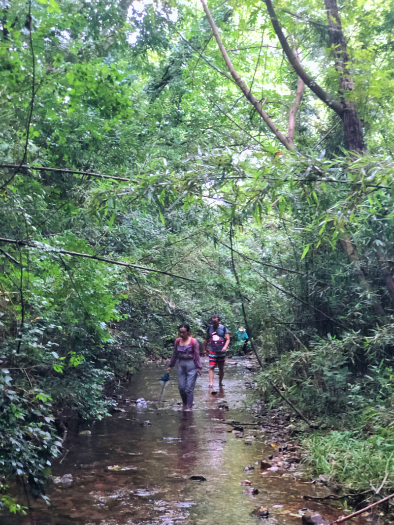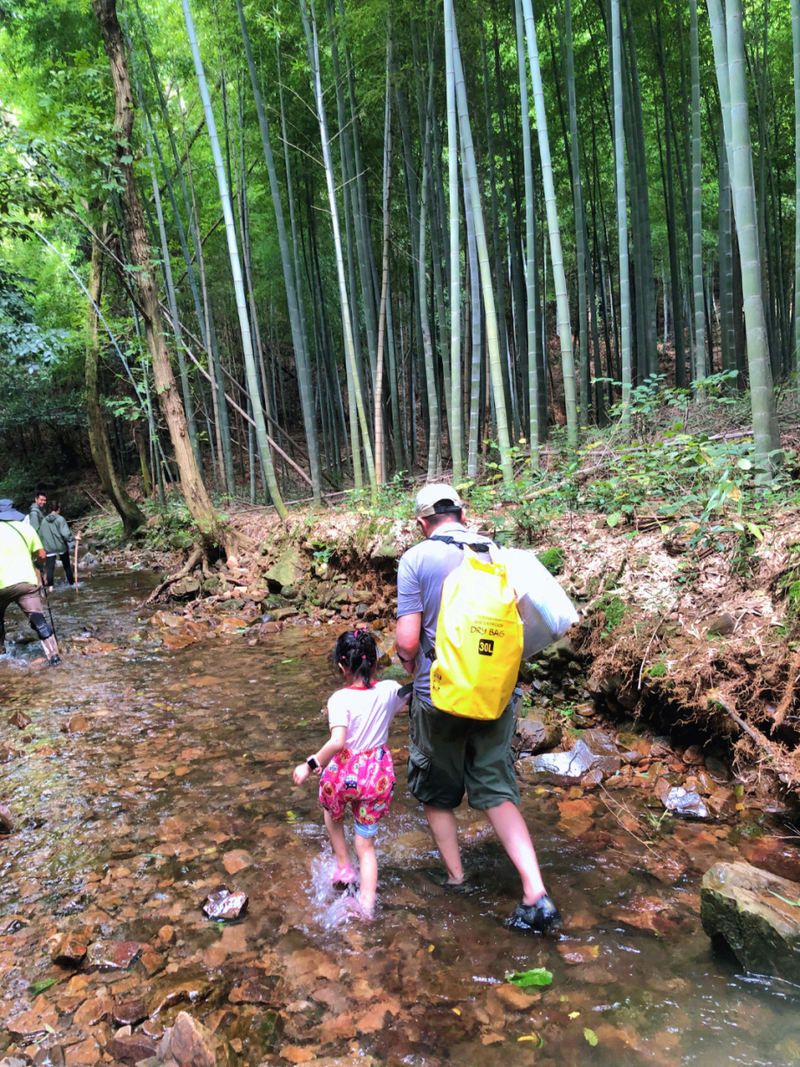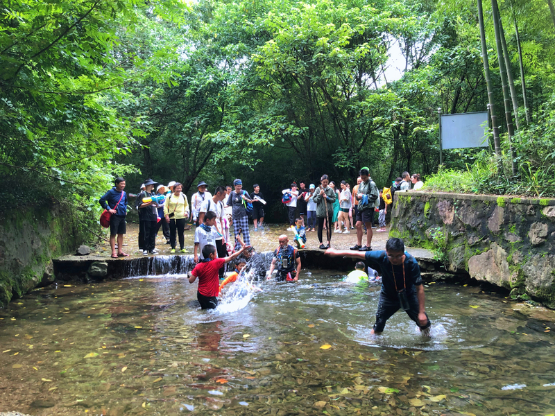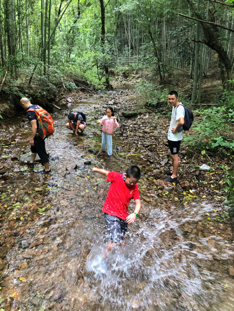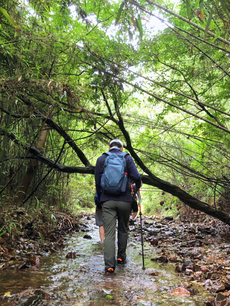下山后经过一片竹林,我们就到达水路溯溪的地方,水路部分比较平坦,不想走水路也可以走旁边的山路。水质非常清,有很多小鱼仔,玩玩水,捕捕鱼,找回了不少童趣。