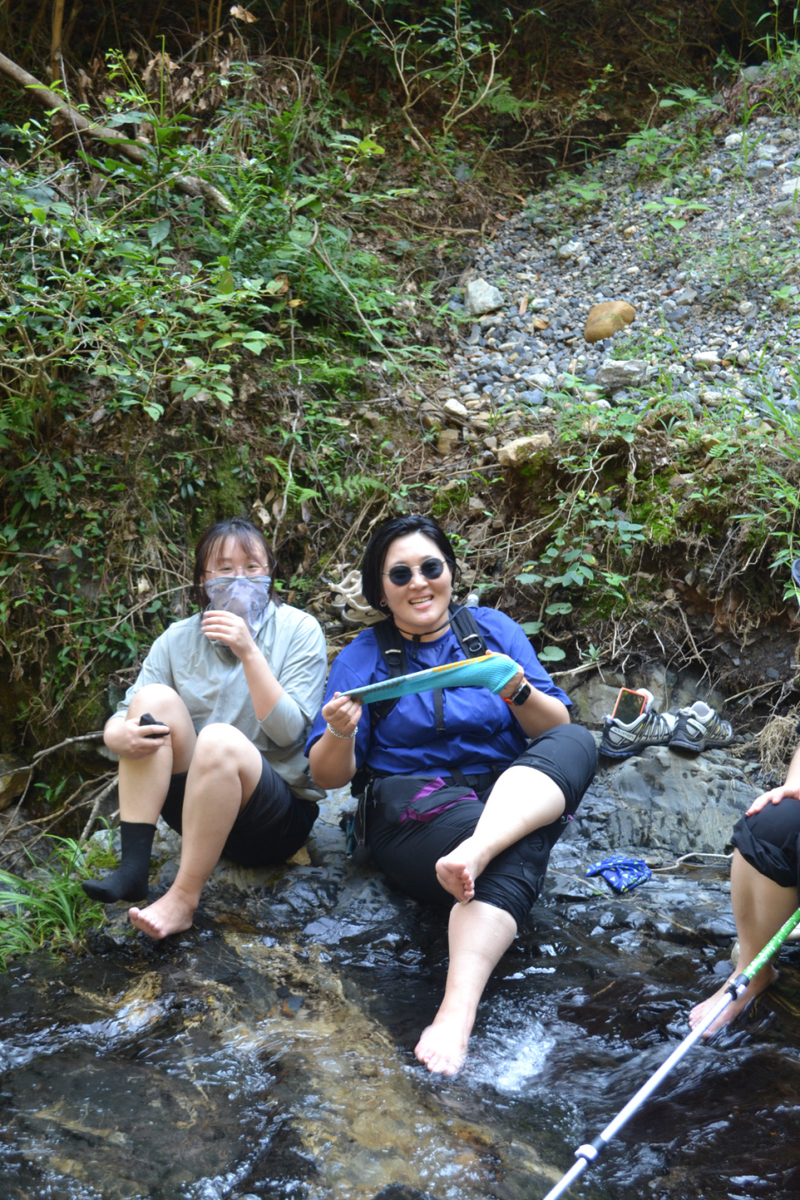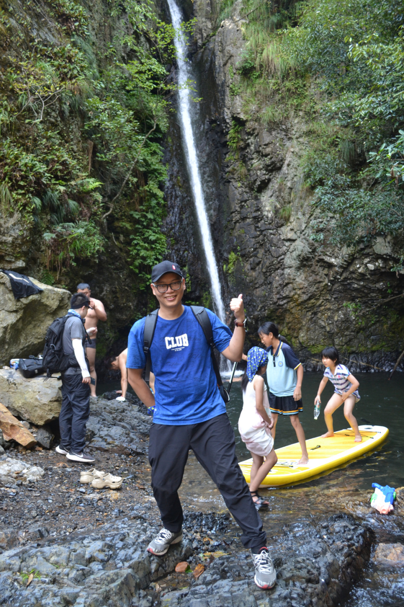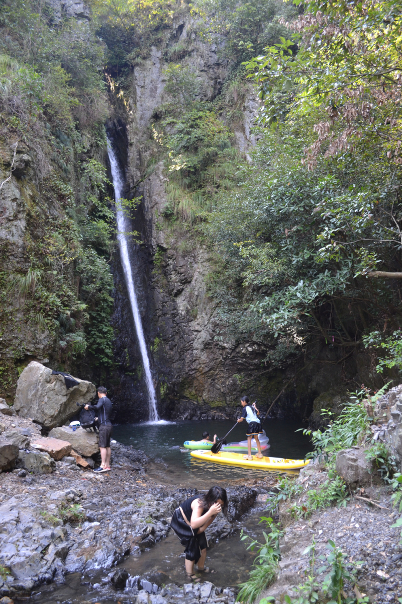 山路下山后,我们到了中间休息的农家,冷冻可乐、盐汽水、棒冰,还有冰镇西瓜,通通都有。稍事休息后,我们出发去后面的大瀑布,由于天气热,还有当地的小伙伴自驾来玩浆板,我们主要是坐在水边嬉戏玩水,大家的拍照是比不可少。