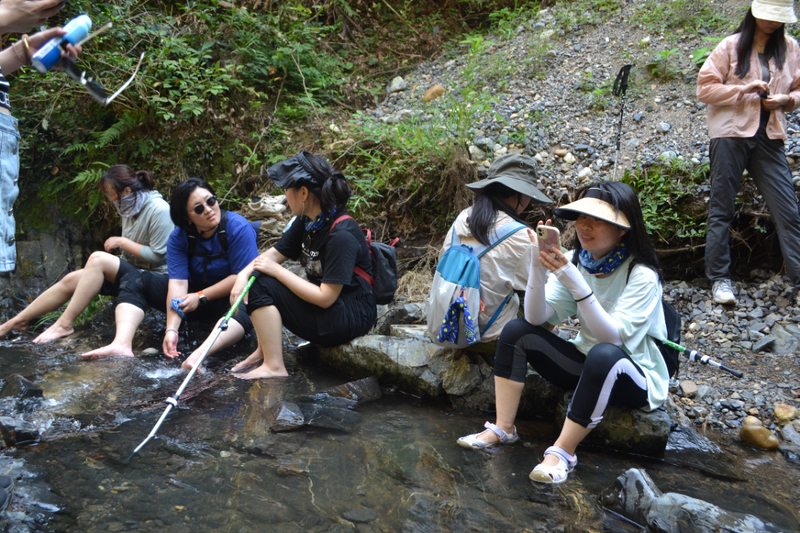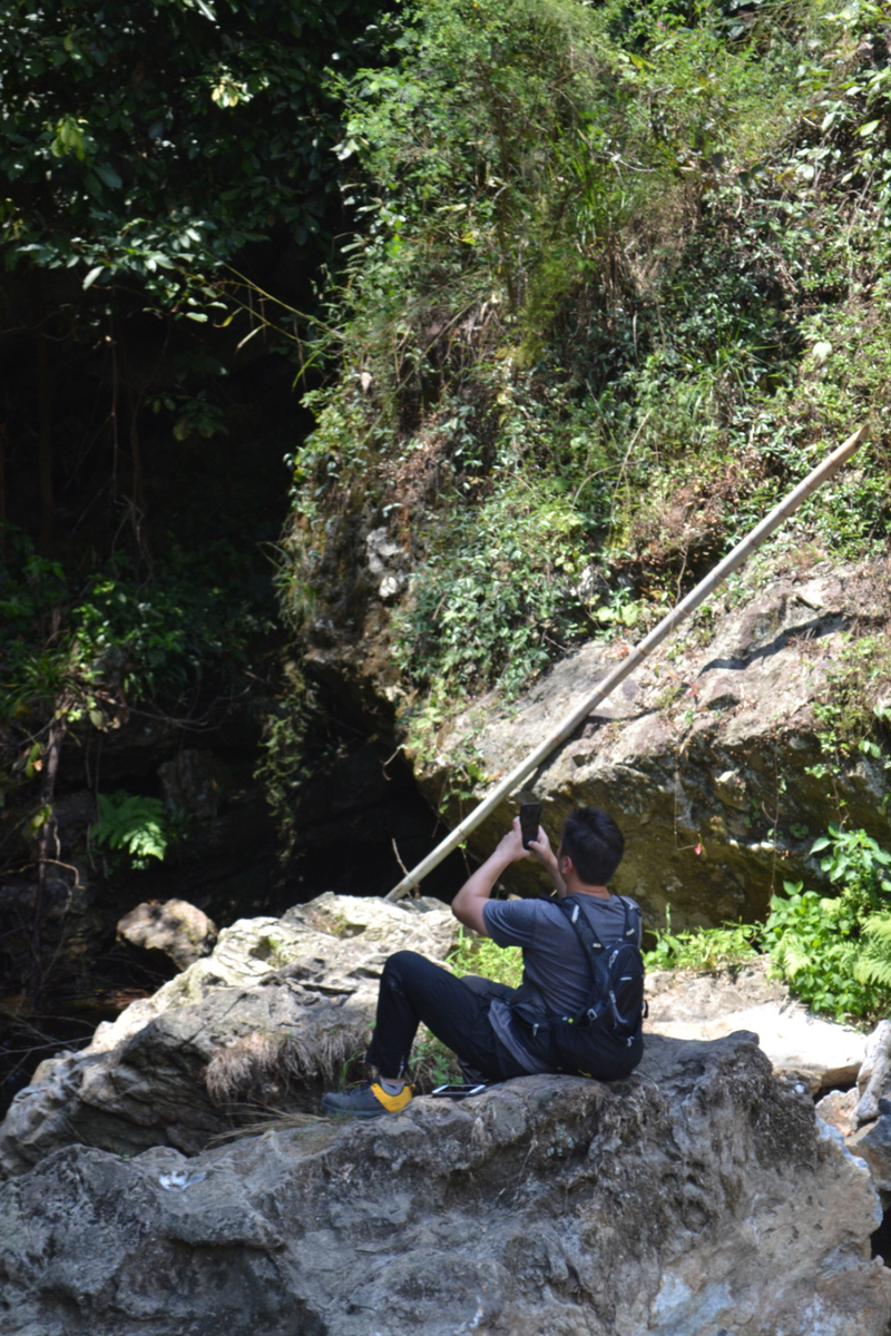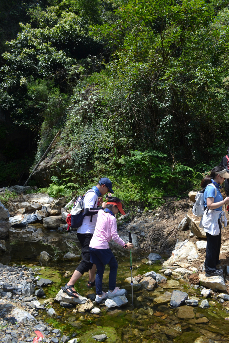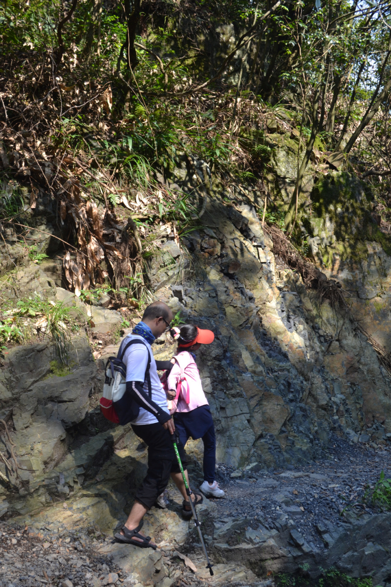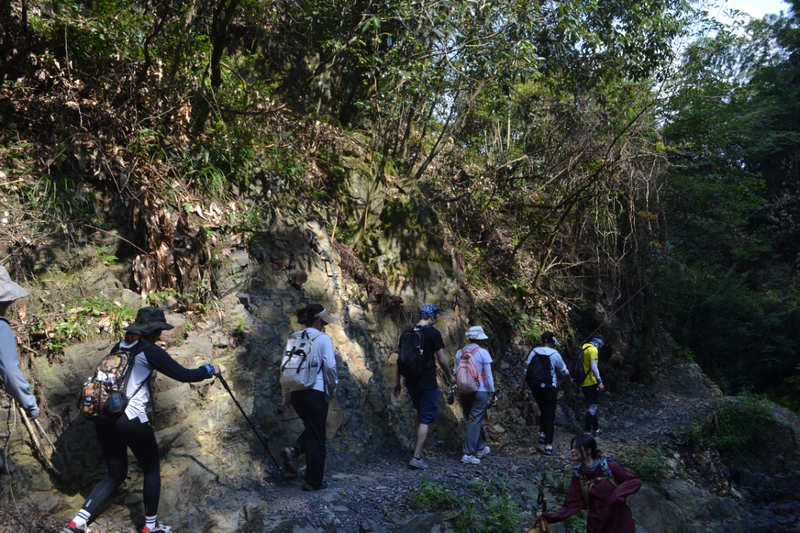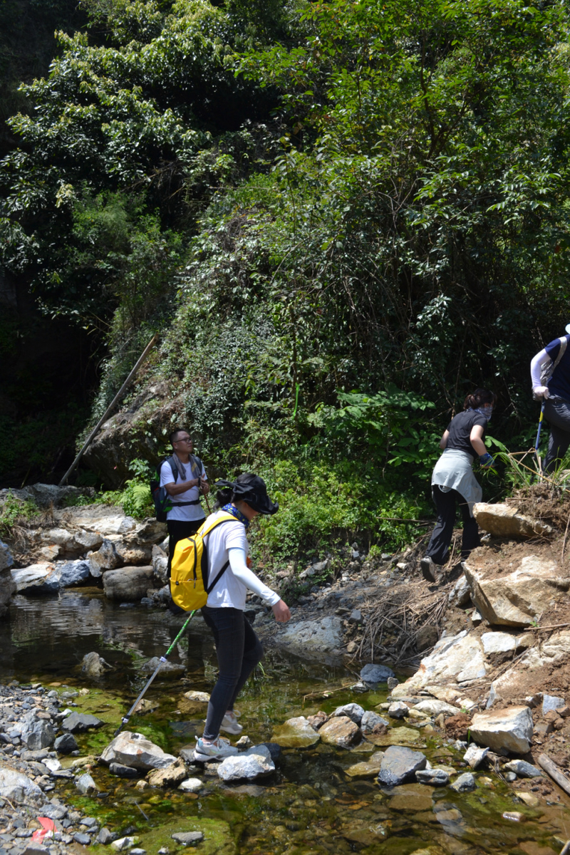 在这里路餐休息后,我们继续后面的行程,后面以山路为主,但是这段山路需要手脚并用攀爬,好在沿途有竹林和树,可以手拉着前进,走过最难的一段山路,继续爬一段山路,穿梭在树林中,到开阔的地方远望山中风景。