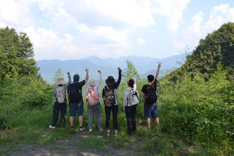 不知不觉我们回到章村,站在村口,吹着夏天的风,赏着村头的风景,等队友来~