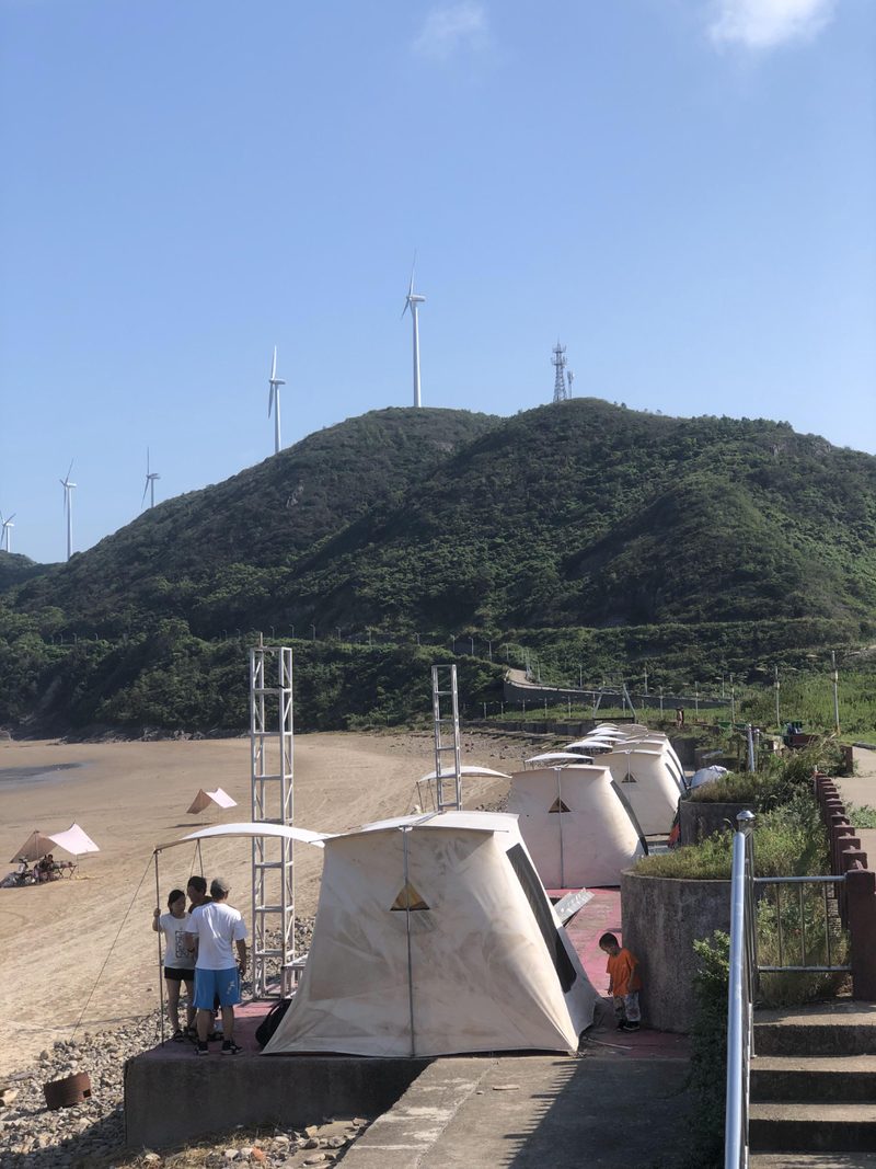 玩的差不多了,16:30我们开始搭帐篷,大人小孩齐动手,沉浸式体验了一把自力更生的海边露营。由于这周人多,海边帐篷比之前多了不少,热闹了更多,相对的晚上睡觉也会被大家影响一些,间接性的伴随着大呼声和小孩的哭闹声。