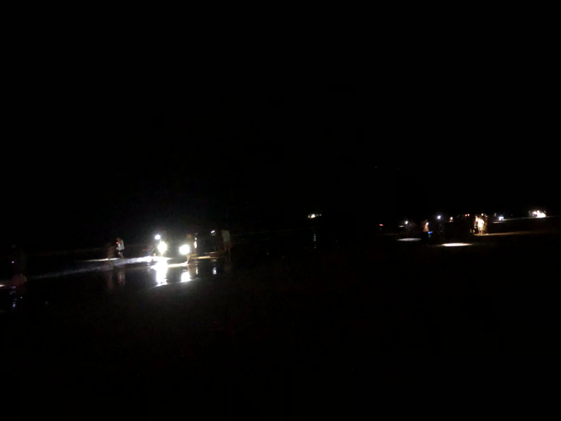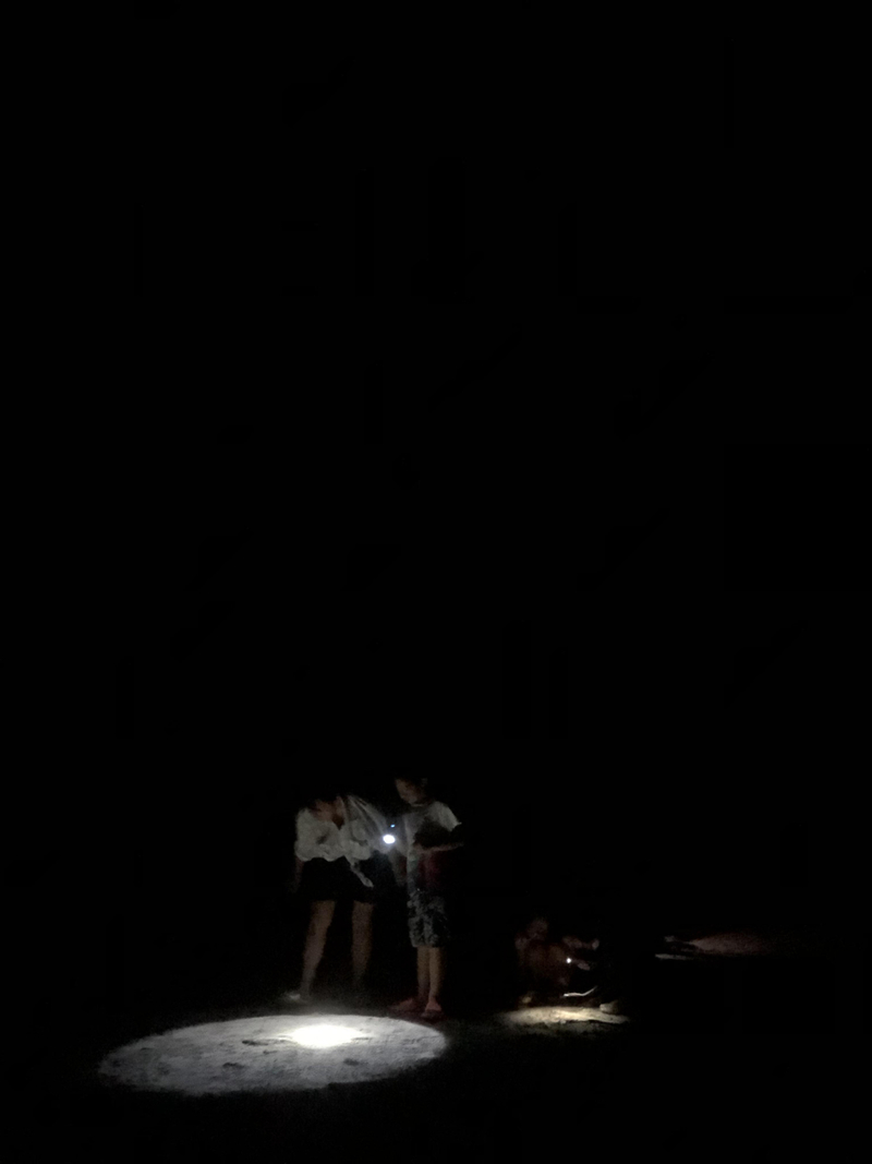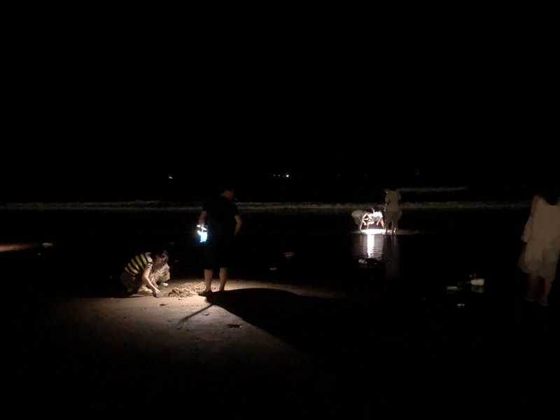 晚饭后,伴随着海边的篝火、烟花,大家拿着手电或者头灯赶海,沙滩上满是光影闪闪。