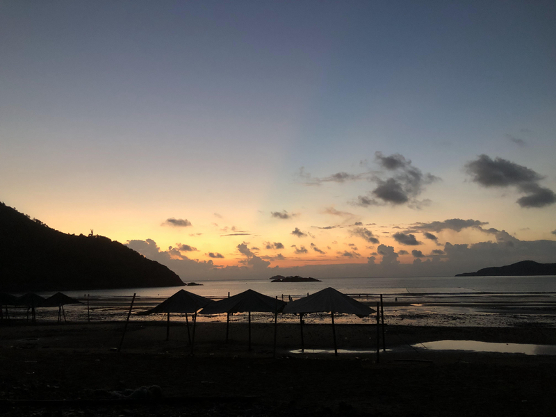 第二天5:00朝霞已经映满天空,但是由于天气,伴随着一些乌云,经过大概半个小时的等待,还是等来了完美的日出。早上的日出光芒照红了整个沙滩,美好的一天开始啦~
