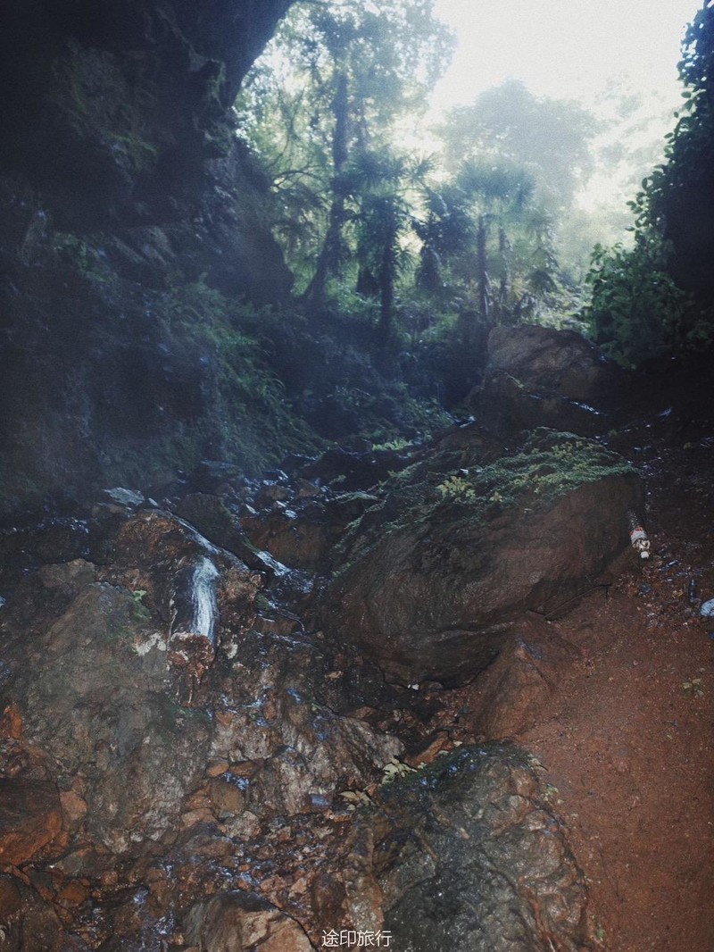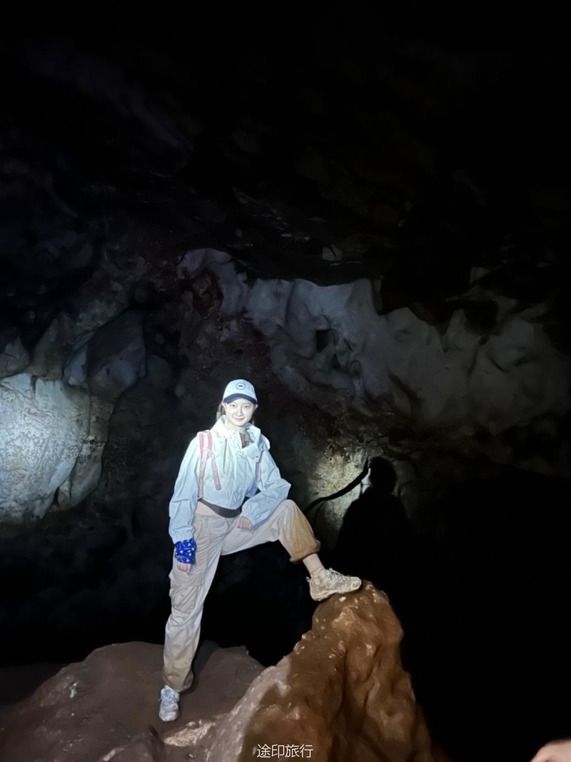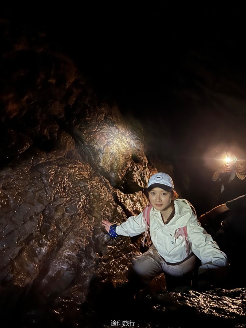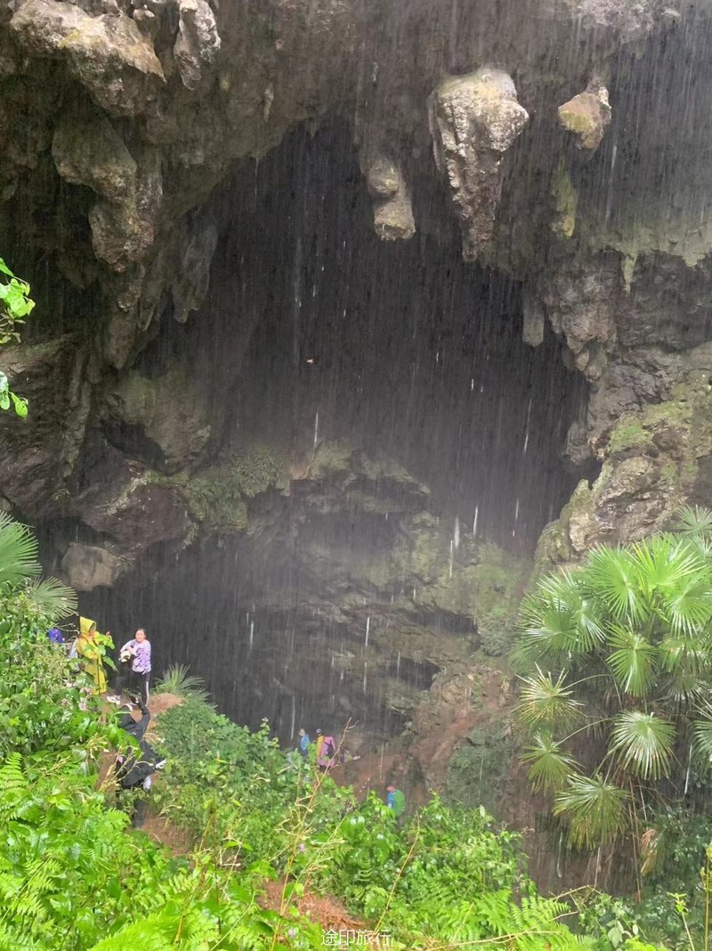 上山途中还是晴空万里,结果刚到达怪石林,倾盆雨下,哪怕和队员跑向洞口,也已经浑身湿透