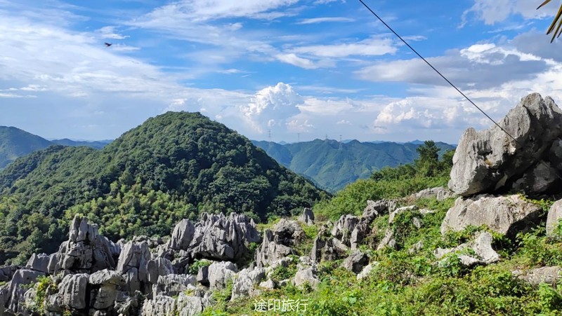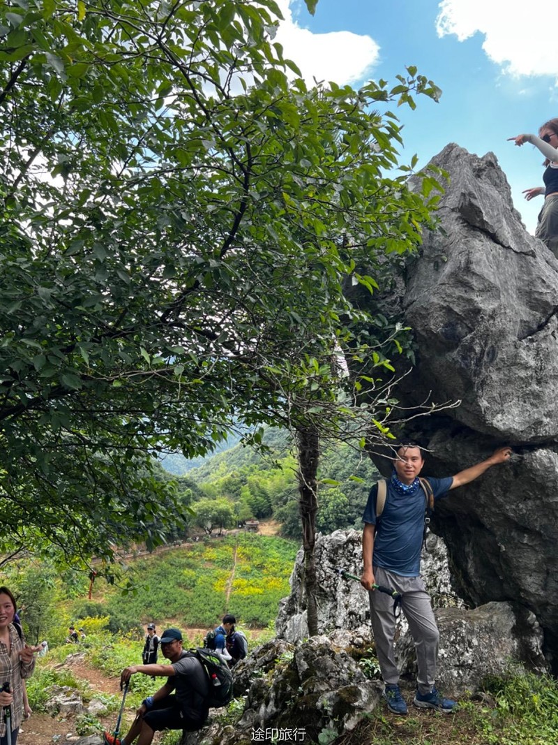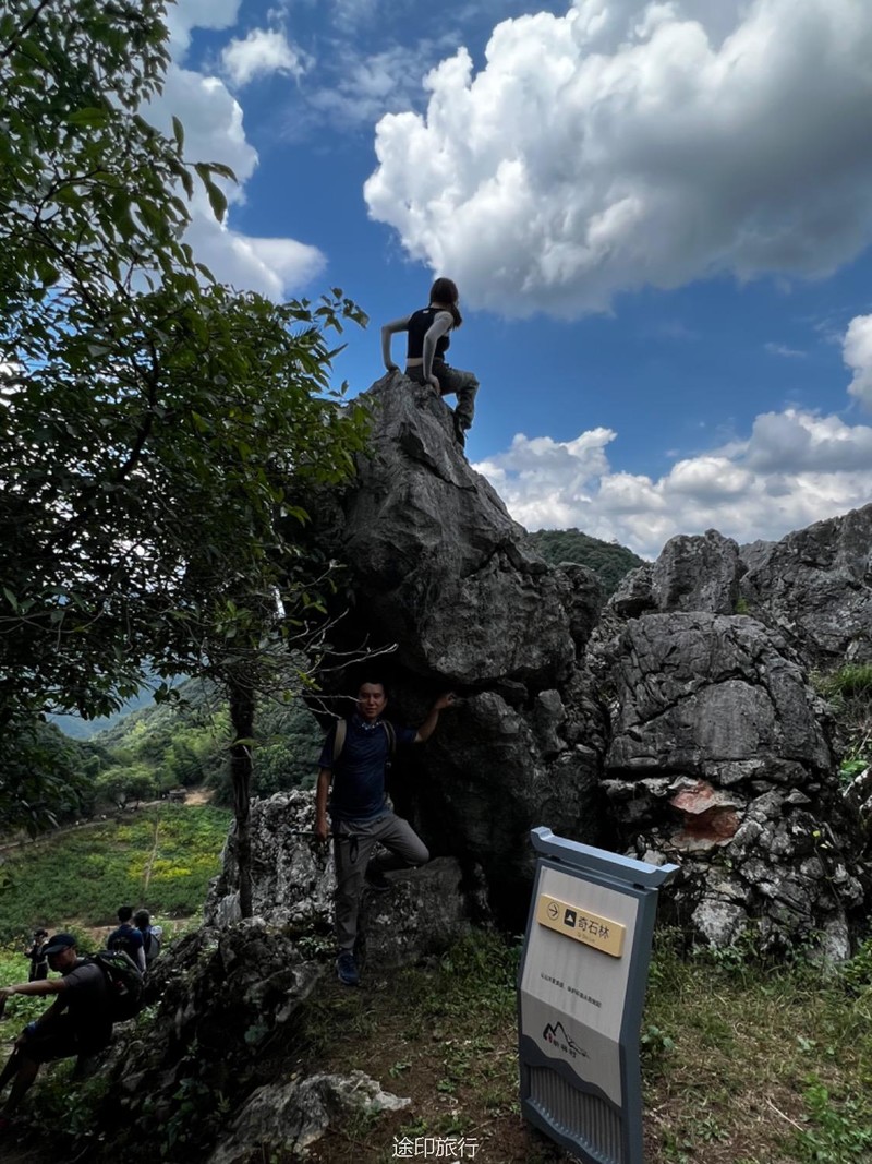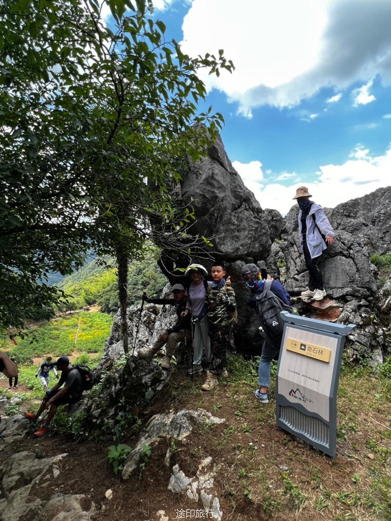 上山途中还是晴空万里,结果刚到达怪石林,倾盆雨下,哪怕和队员跑向洞口,也已经浑身湿透