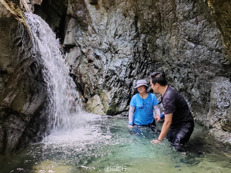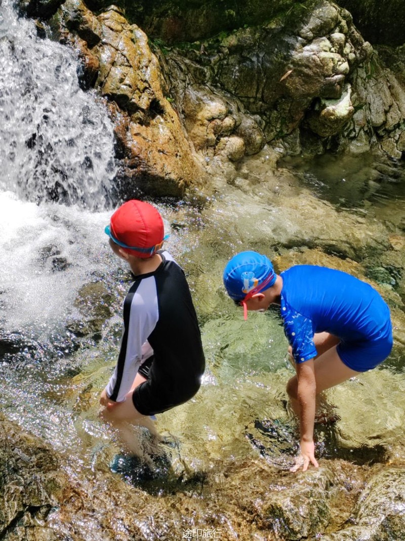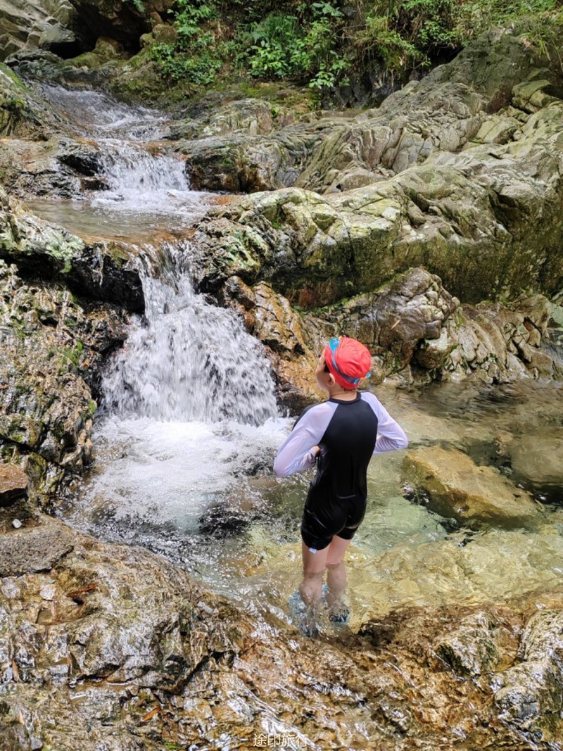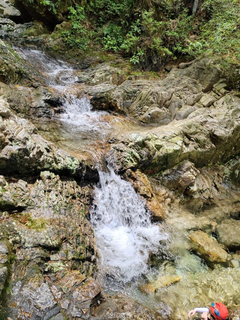 全程三里折返线,一路沿途竹林茂密,溪水潺潺,每一口溪谭都连着一个小瀑布,潭瀑交替,一直延伸到 山顶即到达雪花潭。因此在整个路程中可以打水仗、游泳、玩水、溯溪、徒步,真的是个青年老少皆宜的路 线。想要徒步爬山的可以完全不下水,想要玩水溯溪的可以完全也不离水。全程有洗手间和可供歇息的凉亭 随处可见,家庭出游或者亲子出游都可以。