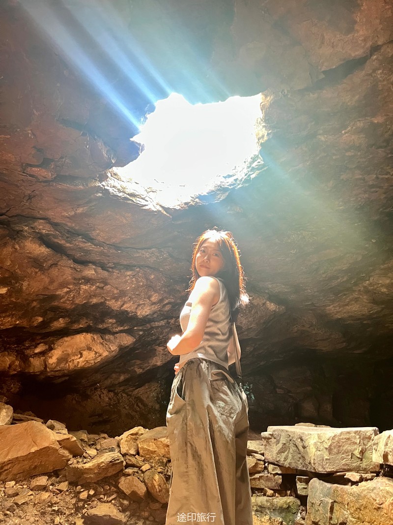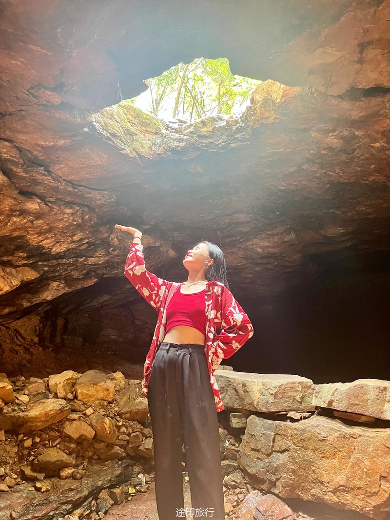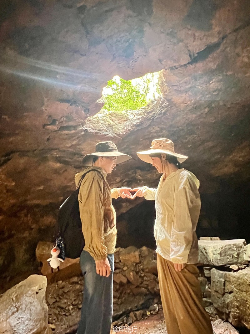 徒步的首个目的地是联珠洞,这是一个以石灰岩为主的山洞。我们蜿蜒而上,沿途观赏着壮丽的山景和远处飘渺的云雾。当我们来到联珠洞时,整个队伍不禁屏住了呼吸。洞内的钟乳石、石笋和石柱,以及微弱的灯光相互映衬,仿佛置身于一个神秘的地下世界。我们迫不及待地拿出相机留下这美妙的一刻。