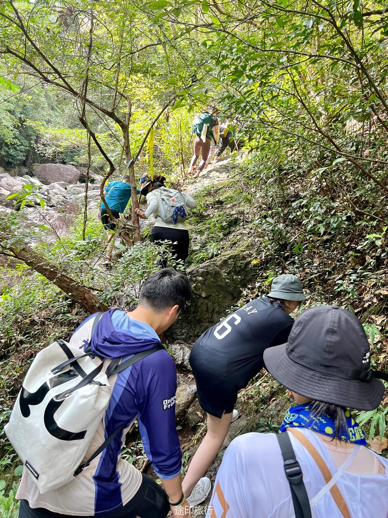 期间有一段需要穿越树丛,攀爬绳子,我们不仅体验到了大自然的威力和美丽,还增强了团队合作和互助精神。当有人面临困难时,我们总会伸出援手,相互支持,共同克服困难。这使得整个旅程更加充满意义和纪念价值。
