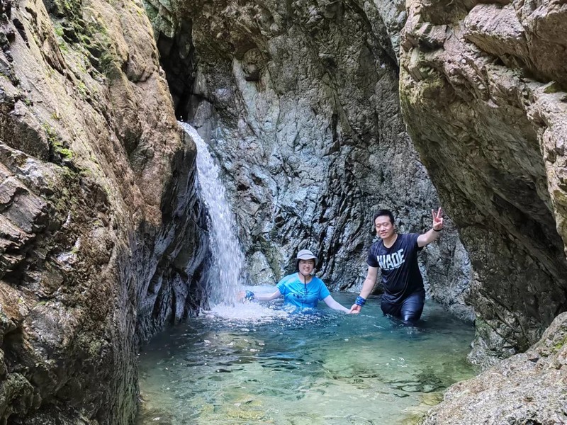 雪花潭溯溪是一条比较特别的溯溪线,可以一直沿水流而上,如果不想下水也可以一直走在溪水边的小路,一路上可以看到一个一个的大水潭,可以随时下去玩玩水再上来继续向上,雪花潭的水也是溯溪线里面比较清澈的