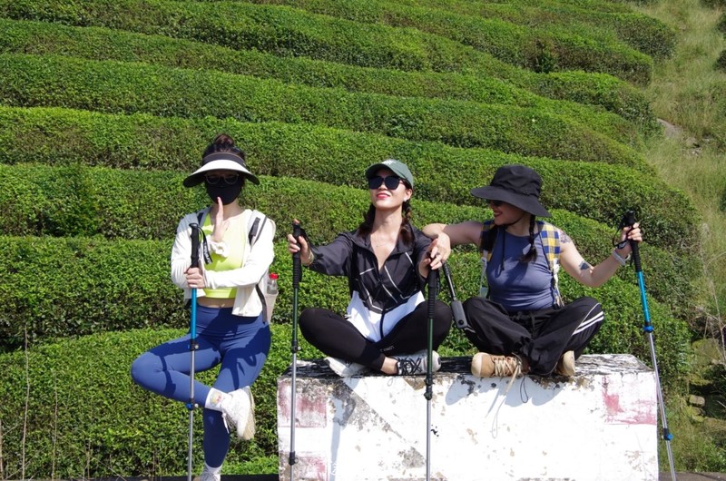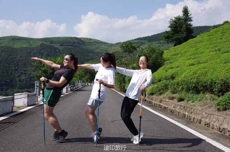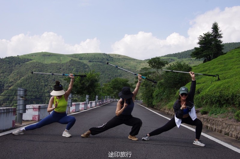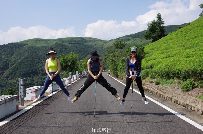 福泉山茶海三面群山环抱,一面临海,方圆10km2,树林葱茏,茶园苍翠,山上云雾缭绕,自然形成高山独特气候,为生产名茶创造了得天独厚的优势。 一路从竹林,针叶林穿上去后就到了公路,视线一下子开阔起来,大家纷纷拍照打卡。沿着公路,是大片大片的茶园,特别的漂亮。