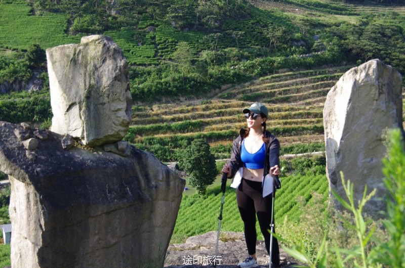 后半段去了奇石阵。这里的奇石阵规模并不大,有点像是迷你型的“巨石阵”。而且分立在两个不同的山头,同时被周围的青山环抱着。挺有特色的。 过了奇石阵后,我们开始下山,回到起点。