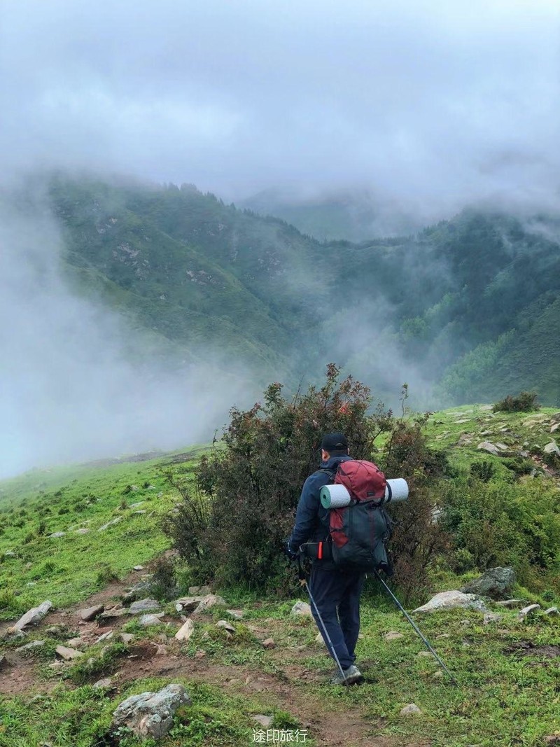 从早上出发就开始下雨,一路大雾弥漫,走在前面的人若隐若现,很快就隐入雾里看不见