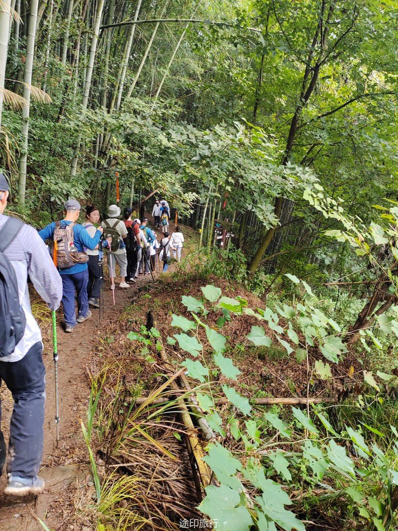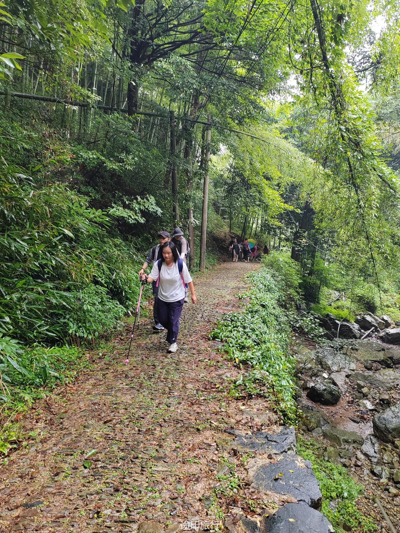 因头天下过雨,所以林间小道有些湿滑,大家行走起来都小心翼翼,但经过雨水洗涤过的森林,空气更加的清新。溪水潺潺而下,我们一行沿阶而上,大家都不愿高声喧哗,舍不得打破这山间美好。