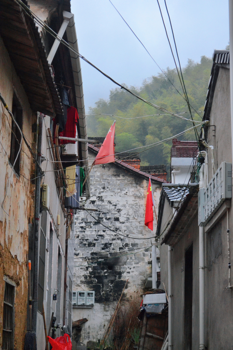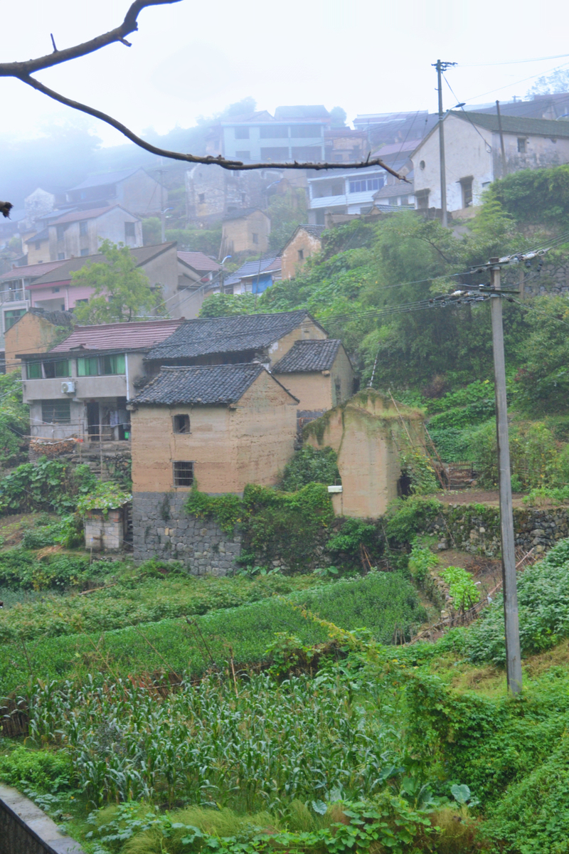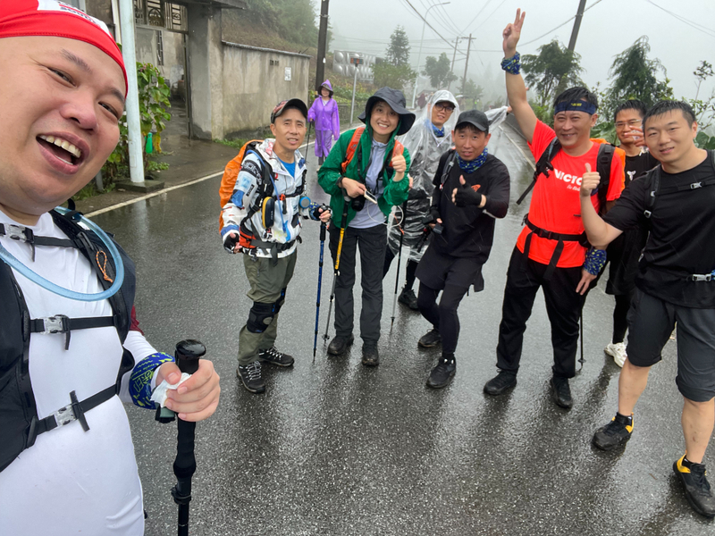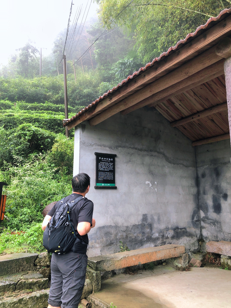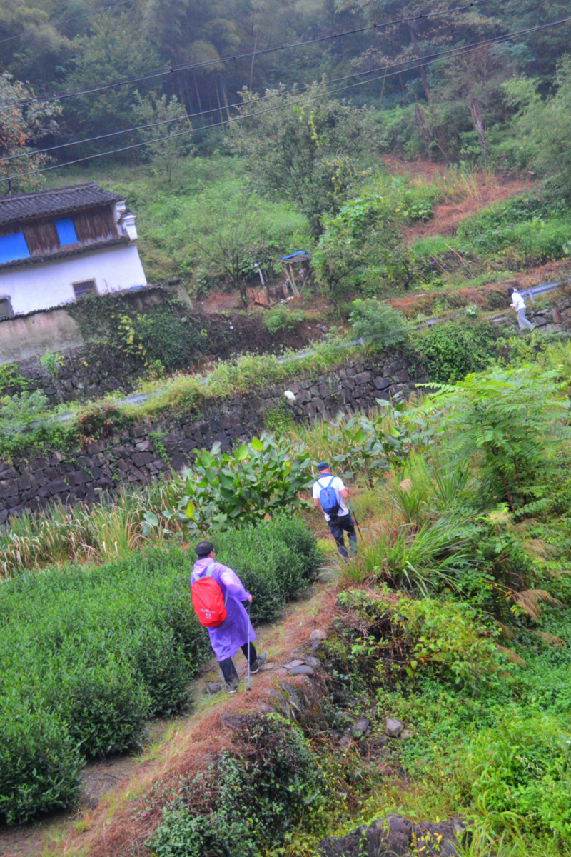 徒步起点是在孙岙村,依旧下着小雨,小伙伴穿上提前准备好的雨衣,稍作调整后开始徒步。开始的台阶路真是先给了个下马威,我们选择控制好节奏,快慢有序的行进。路上有当地的寺庙和修缮的休息点,这点设计特别好,累了就可以停下来歇歇。