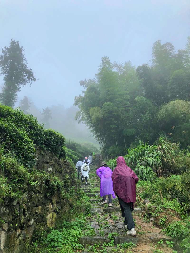翻过了几段山脊,我们顺势而下,后续主要是下山,以台阶路和山路为主,但是岔路口特别多,一不小心可能就走错了。这次我们团队就有4位小伙伴走到隔壁村了,还好有热心大哥帮忙送回大巴处。