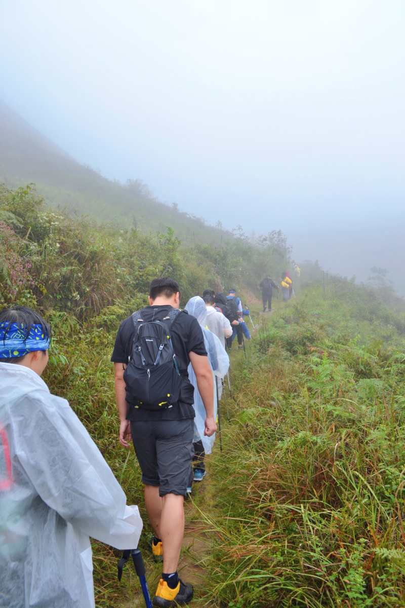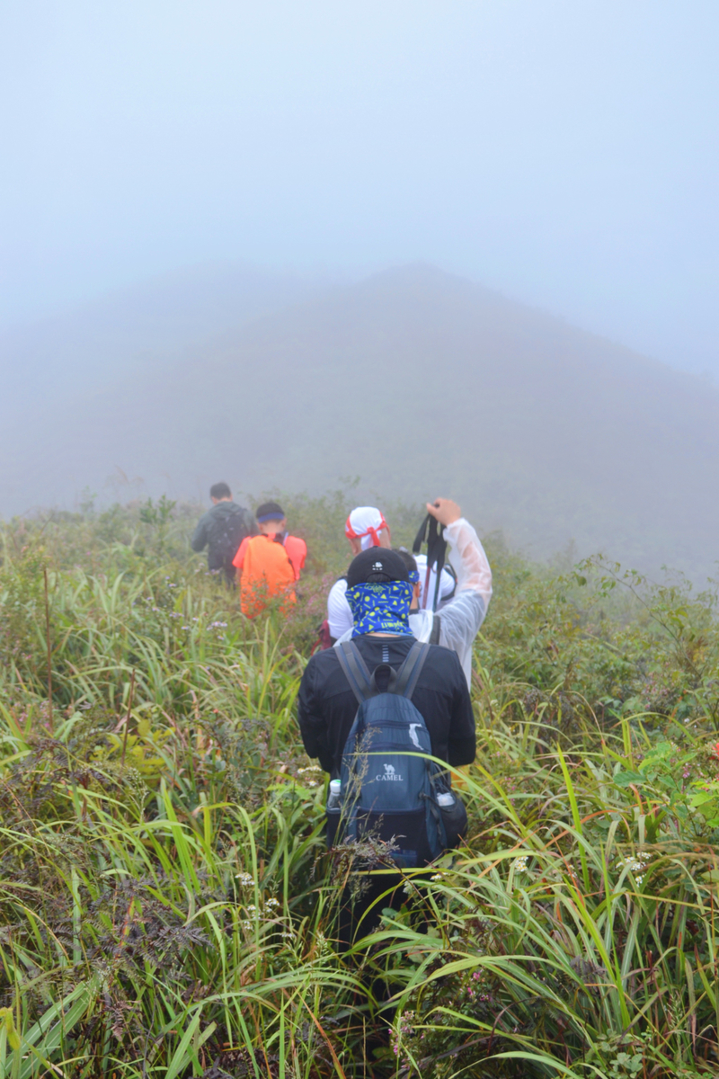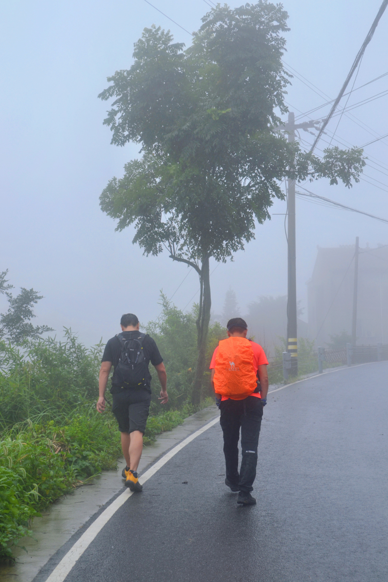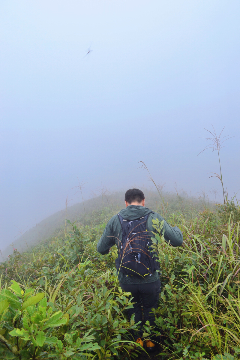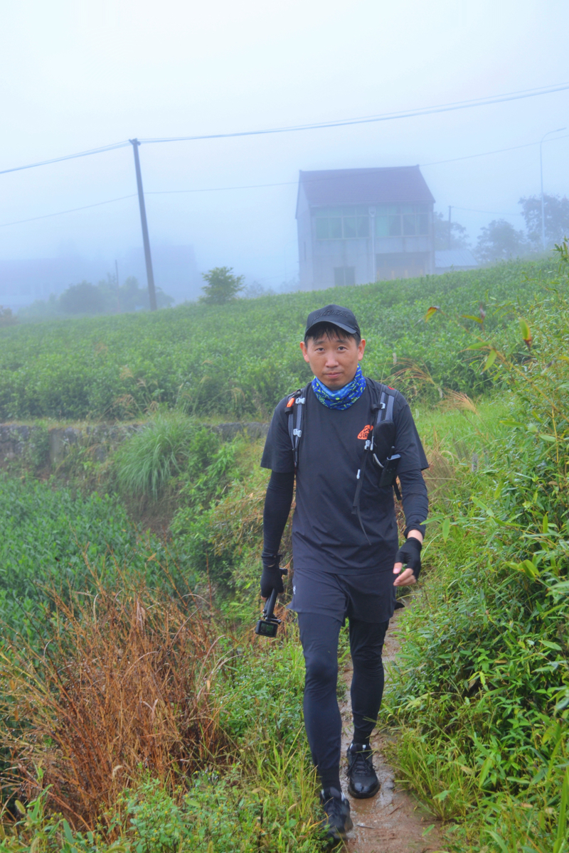 休息后我们继续赶路,后面以土路为主,会经过很多茶园、村庄,村庄有小卖部可以不给,呼吸着湿润的空气,走起来很舒服。不到多长时间,我们就来到此次线路的小武功山段。它最大的特色就是视野开阔,周边的村庄和山岗都能尽收眼底。但是由于今天是云雾缭绕的雨天,能见度就低了不少。我们先绕道去了山下的水库,然后再爬这段山脊线,山上的植被长的很茂密,需要摸索着前进,除了路难走了点,体验是蛮好的。