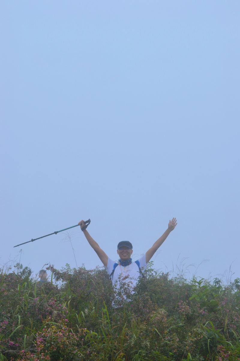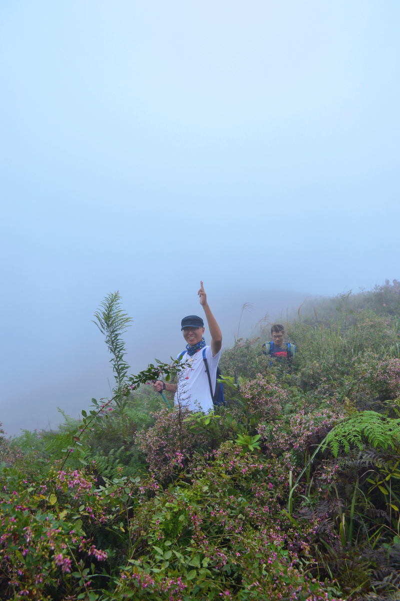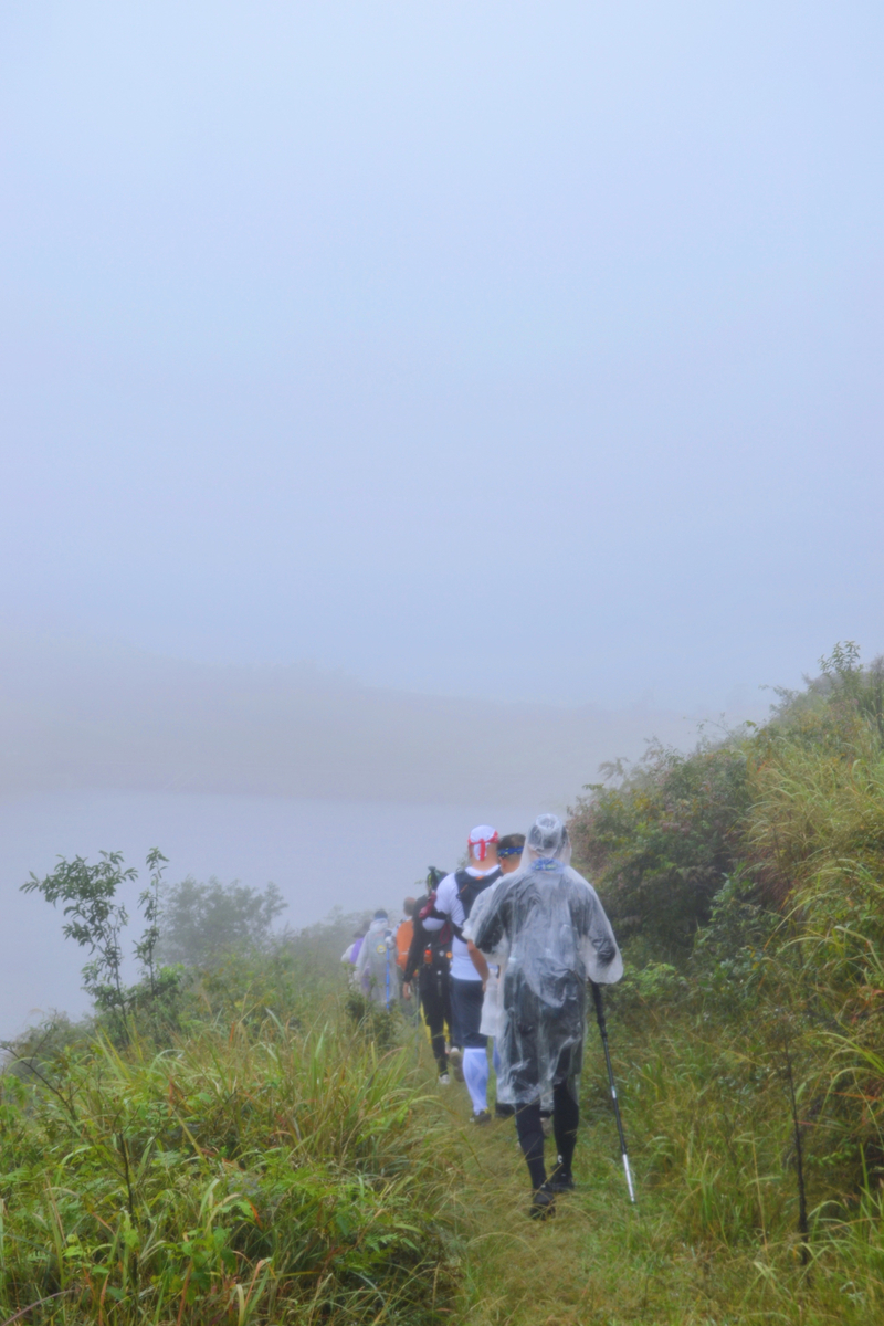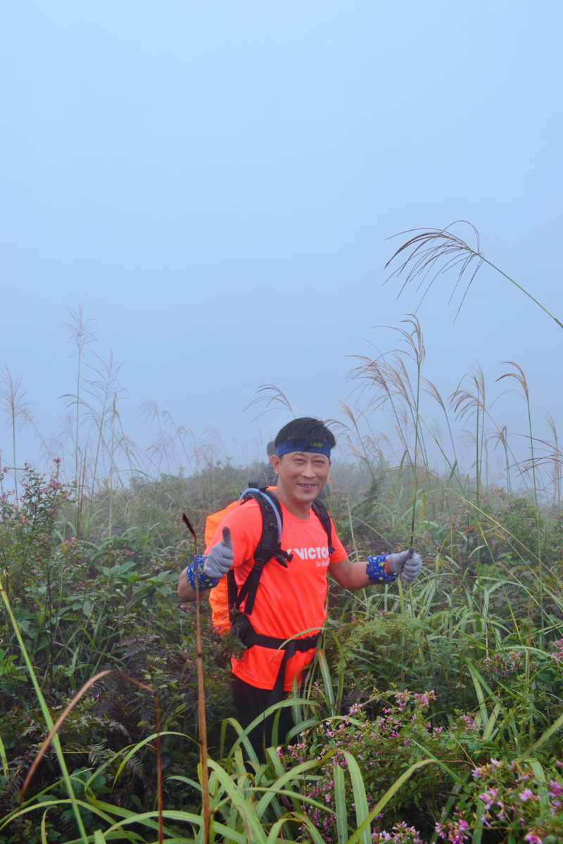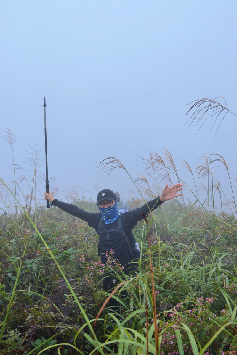 休息后我们继续赶路,后面以土路为主,会经过很多茶园、村庄,村庄有小卖部可以不给,呼吸着湿润的空气,走起来很舒服。不到多长时间,我们就来到此次线路的小武功山段。它最大的特色就是视野开阔,周边的村庄和山岗都能尽收眼底。但是由于今天是云雾缭绕的雨天,能见度就低了不少。我们先绕道去了山下的水库,然后再爬这段山脊线,山上的植被长的很茂密,需要摸索着前进,除了路难走了点,体验是蛮好的。