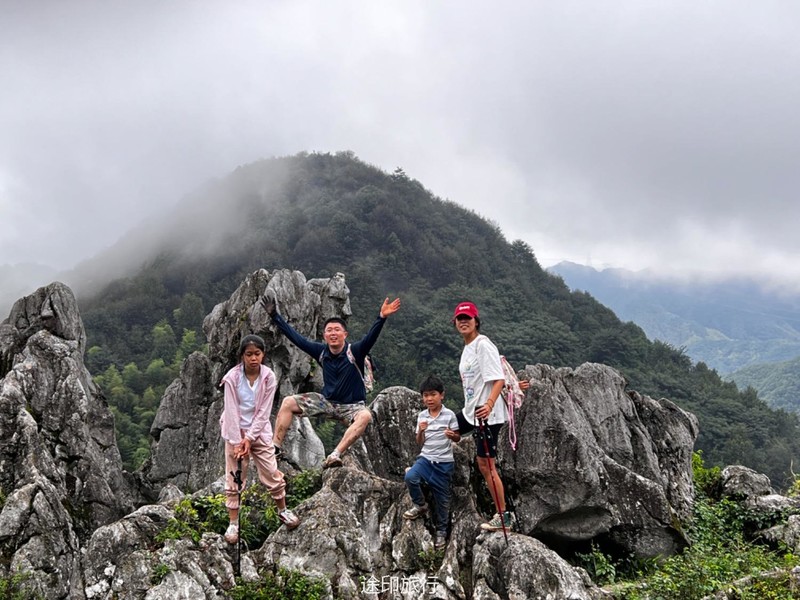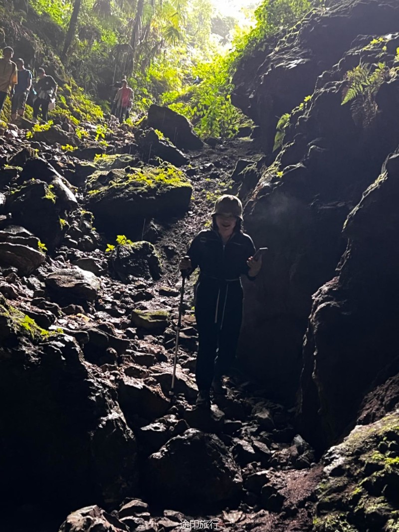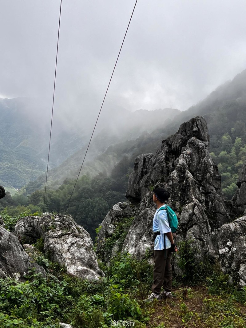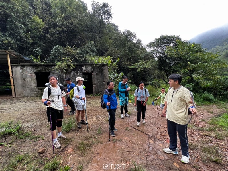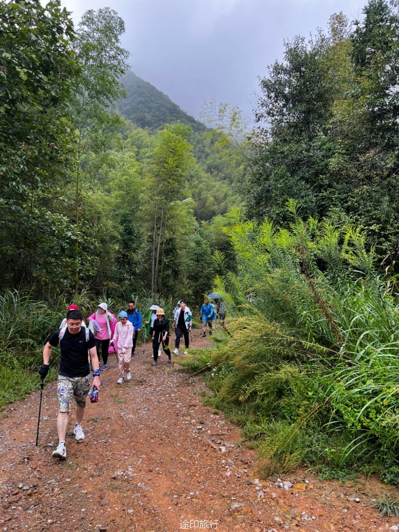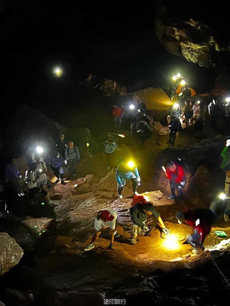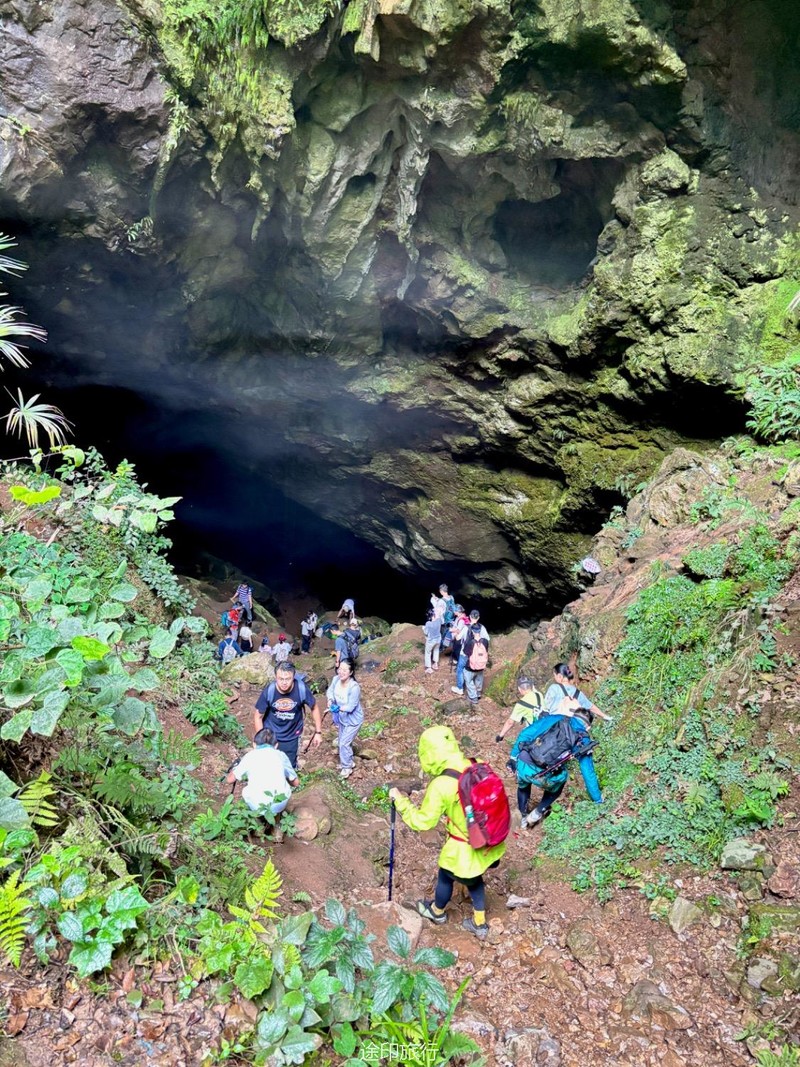 从起点出发,沿路看到农家小院里种植的柚子树以及桂花树。上山途中偶遇牛羊,浓浓的乡间气息,爬坡很短,对经常参加户外的伙伴来说,心率可能刚刚提上来就到山顶了。中午山顶下雨,带着队员直接进入山洞,五十多人在洞口处避雨顺带吃了午餐。这次我们在洞里的三层看到了蝙蝠,听着振翅声还是有些惊喜的,出洞后在山顶怪石那里拍照,还是拍照 ……