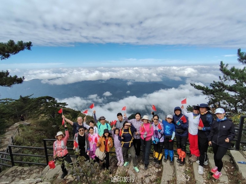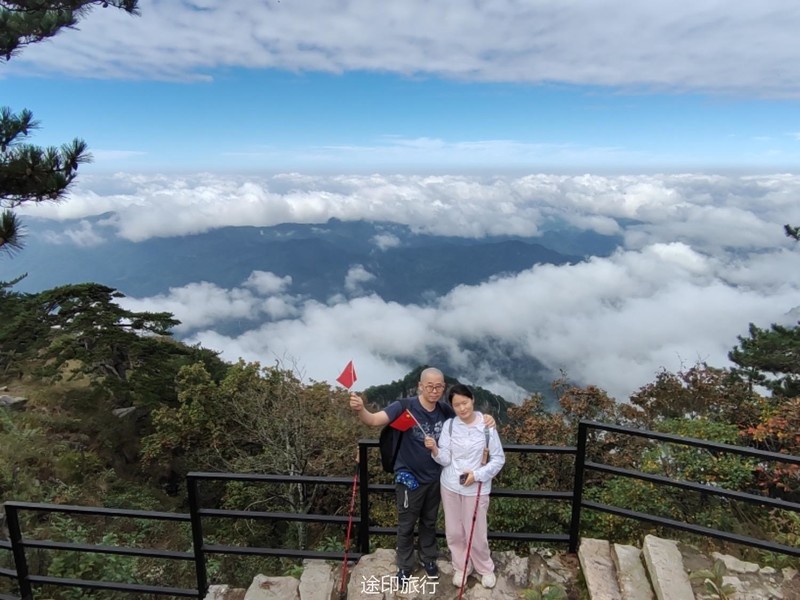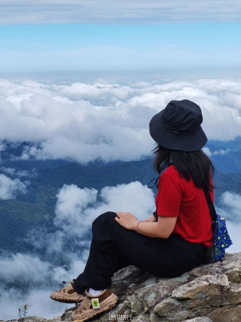 从小雨中出发,一路爬到山顶,视线逐渐变得开阔,也慢慢看到了云海。特别的漂亮。