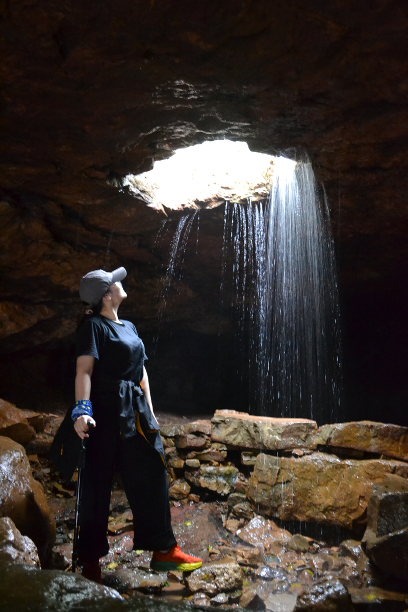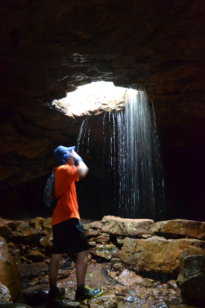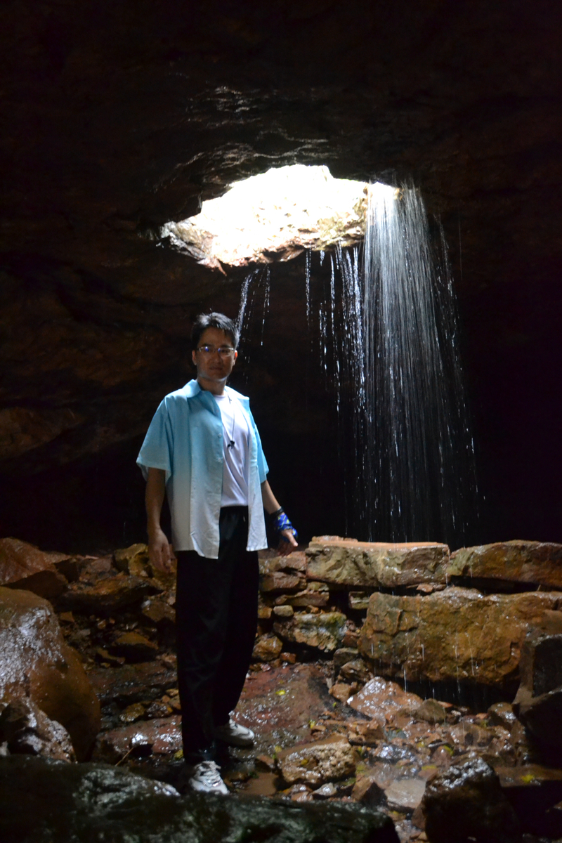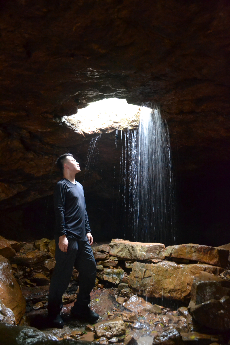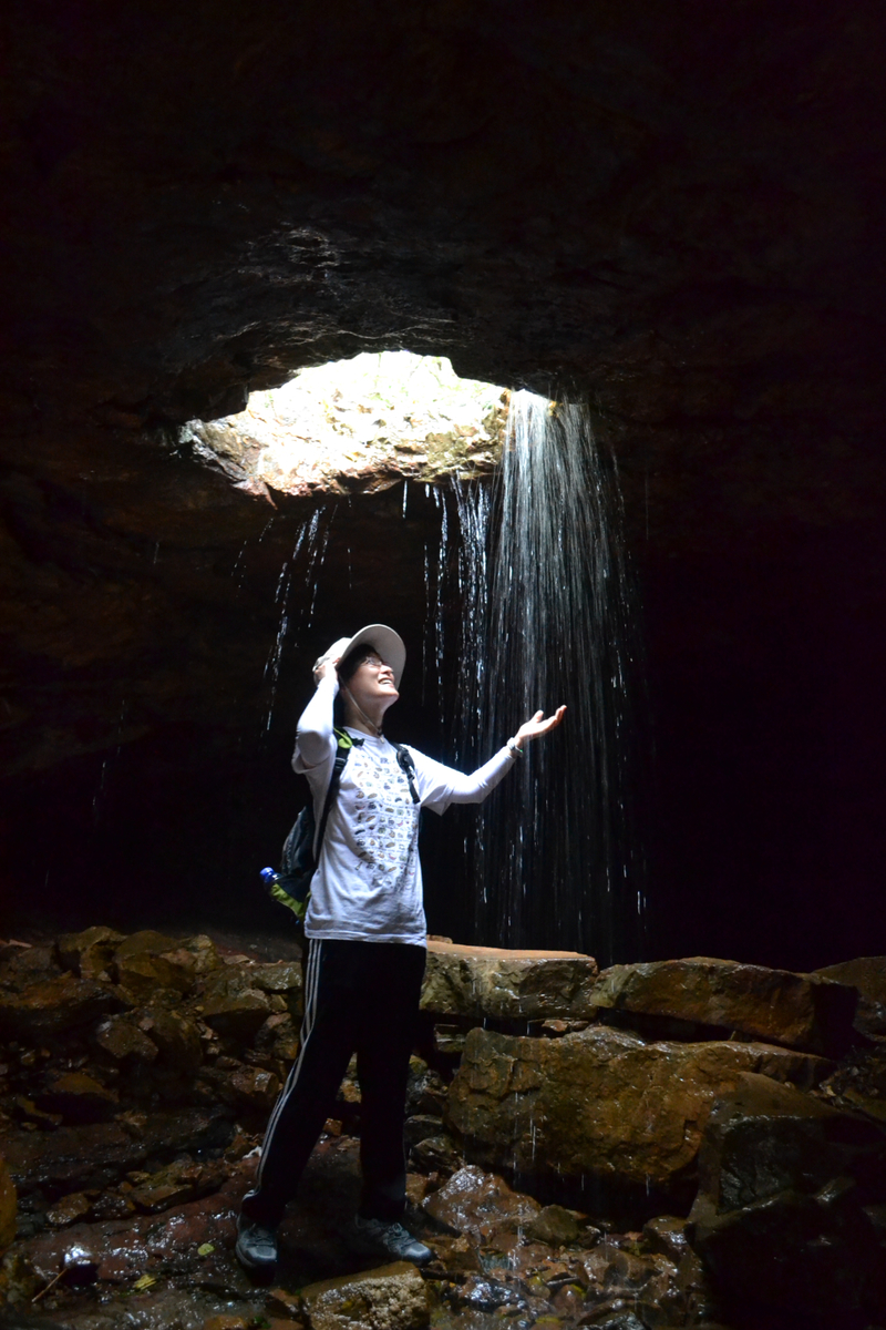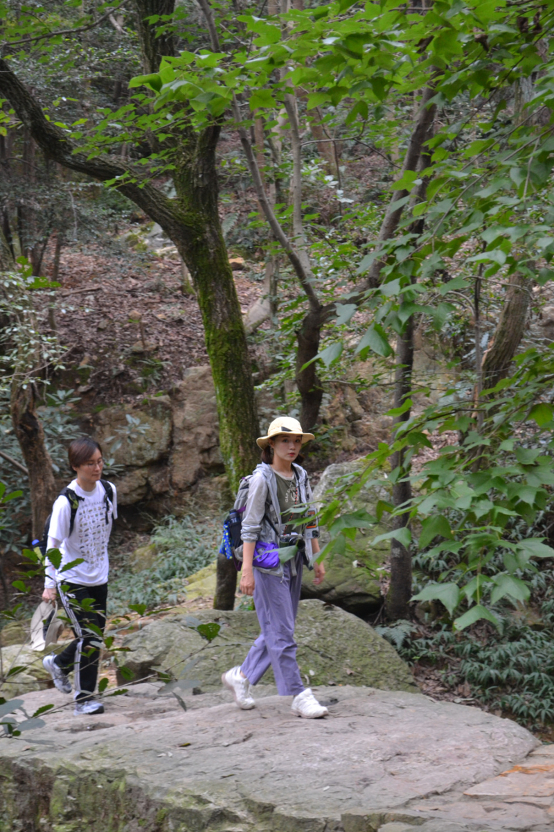 寺庙逛完,我们从山脚出发开始徒步,今天徒步线路6公里左右,爬升300多米,整体偏休闲。夏天的虞山,满眼都是郁郁葱葱的绿色。开始部分以景区台阶为主,路型规整比较好走,大概经过20分钟左右,我们到达联珠洞。这次运气超好,看到了有水的联珠洞,弥补了上次来没看到的遗憾。溪水顺着洞口而下,在光线的照耀下,串成条条珠帘,名副其实的验证了联珠洞的名字,在这里拍照打卡必不可少,群组照片必须安排~