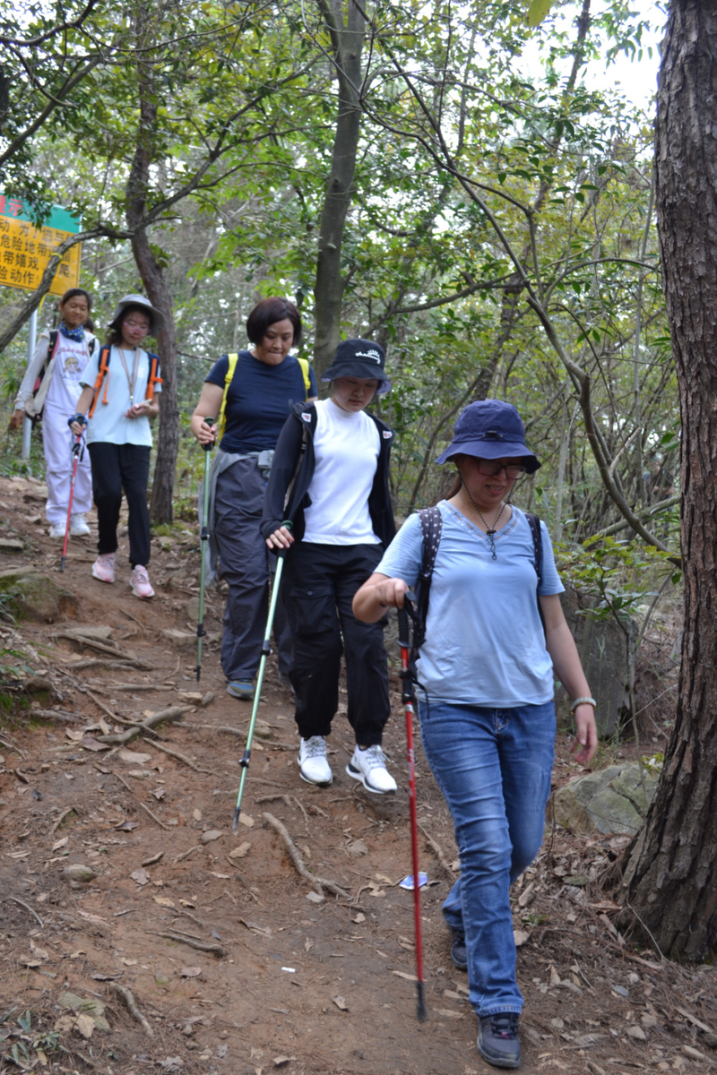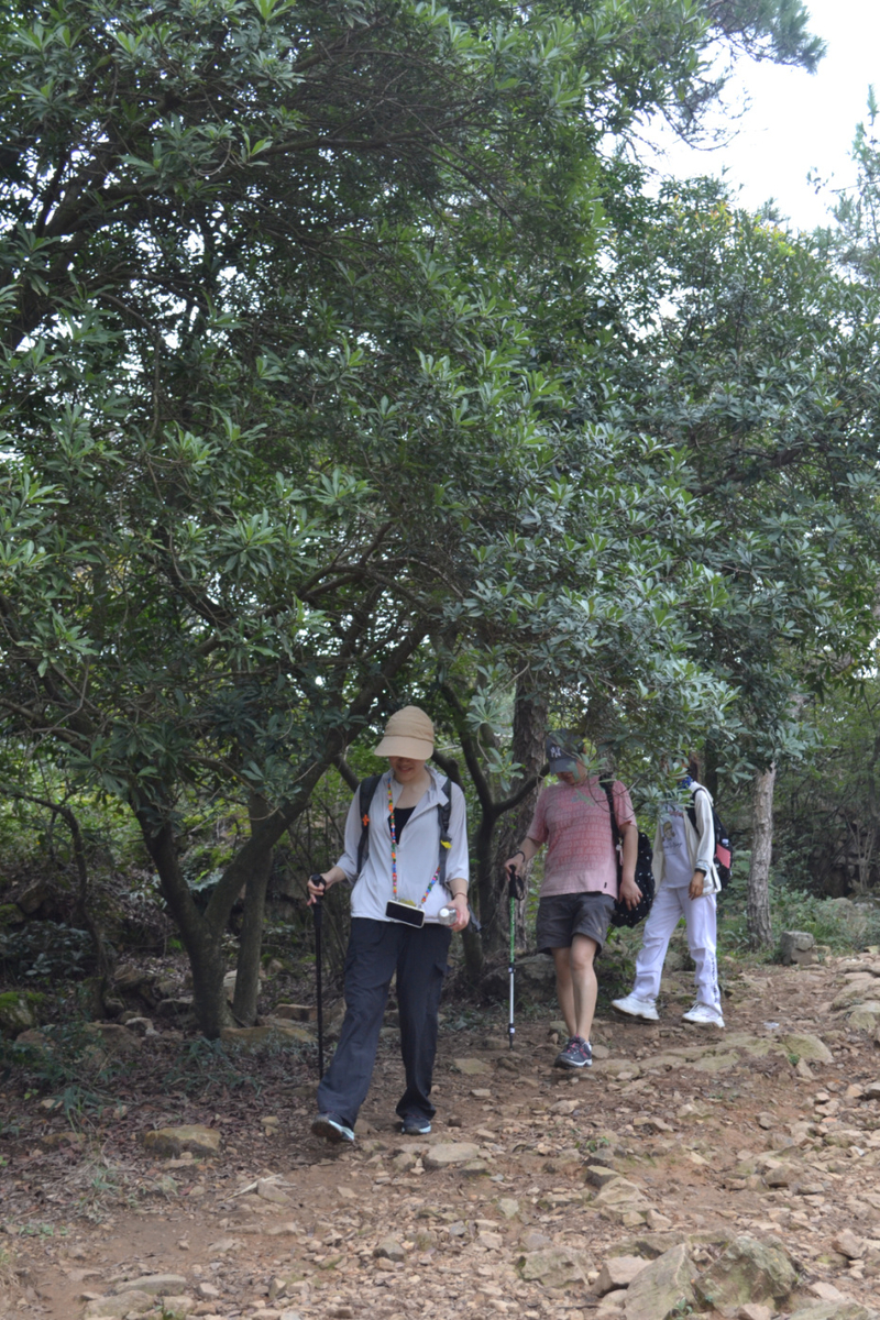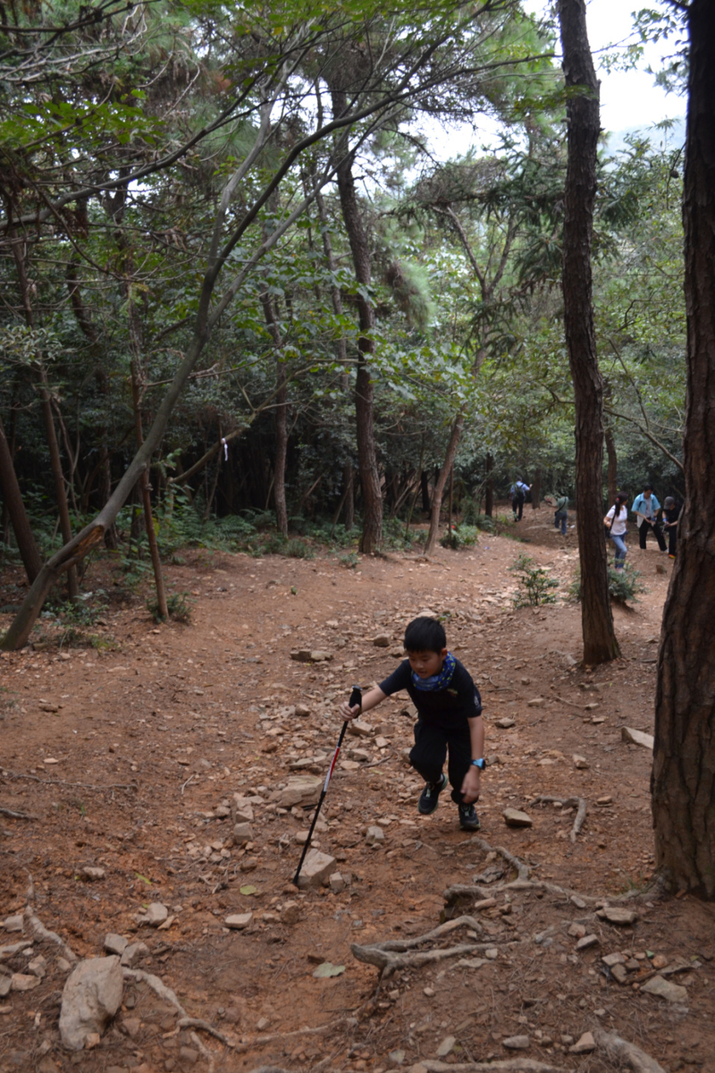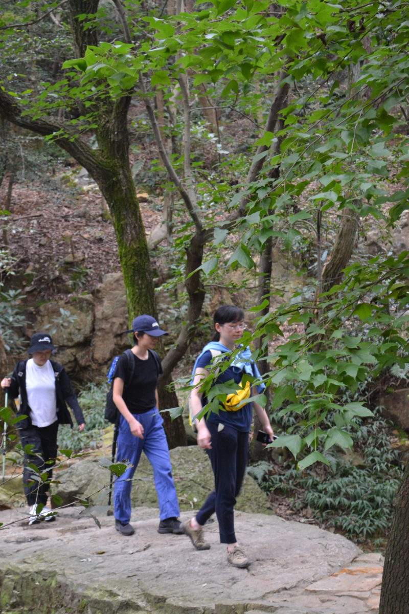 随后我们开始最难走的一段:一是坡度大;二是路型复杂,掺杂石头的土山路。经过一番努力,我们终于登上了山顶,来到一片茶园,望着满眼绿色,呼吸着新鲜的空气,享受着大自然的恩赐。