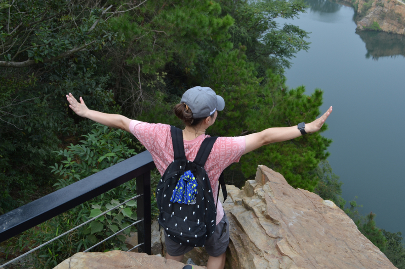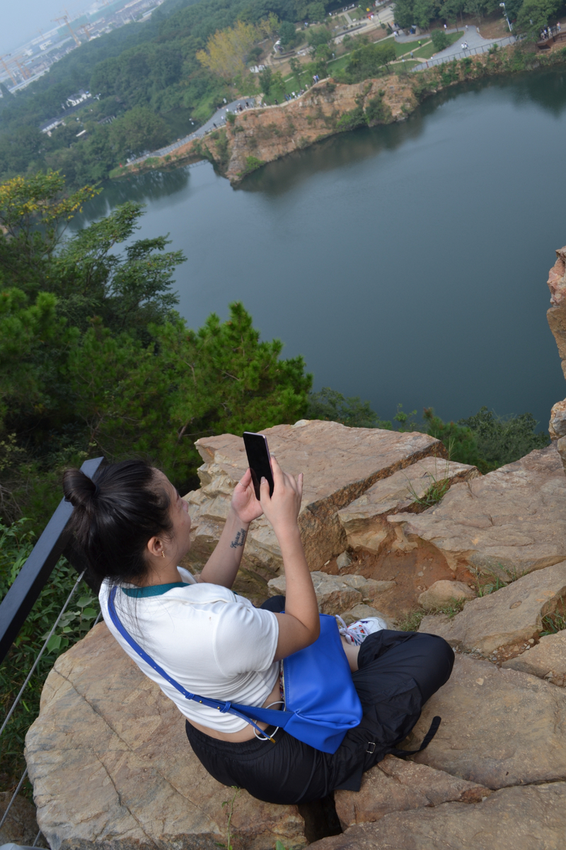 再后就是一段公路,经过前面的一段山路,这段公路走起来太友好了,大家也趁此调整一下徒步节奏。再就是下山路,俗话说的上山容易下山难在这里得到验证,碎石山路,对于没穿合脚鞋子的小伙说难了不少,途中会看到不少野生板栗,不介意的小伙伴可以品尝吃一吃。快到山脚下是,我们会经过矿坑景点,这里也是拍照打卡必不可少的地,还是必须安排拍照打卡~