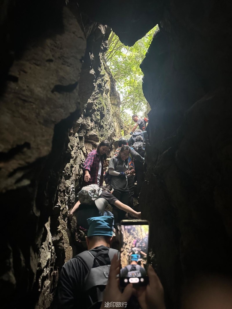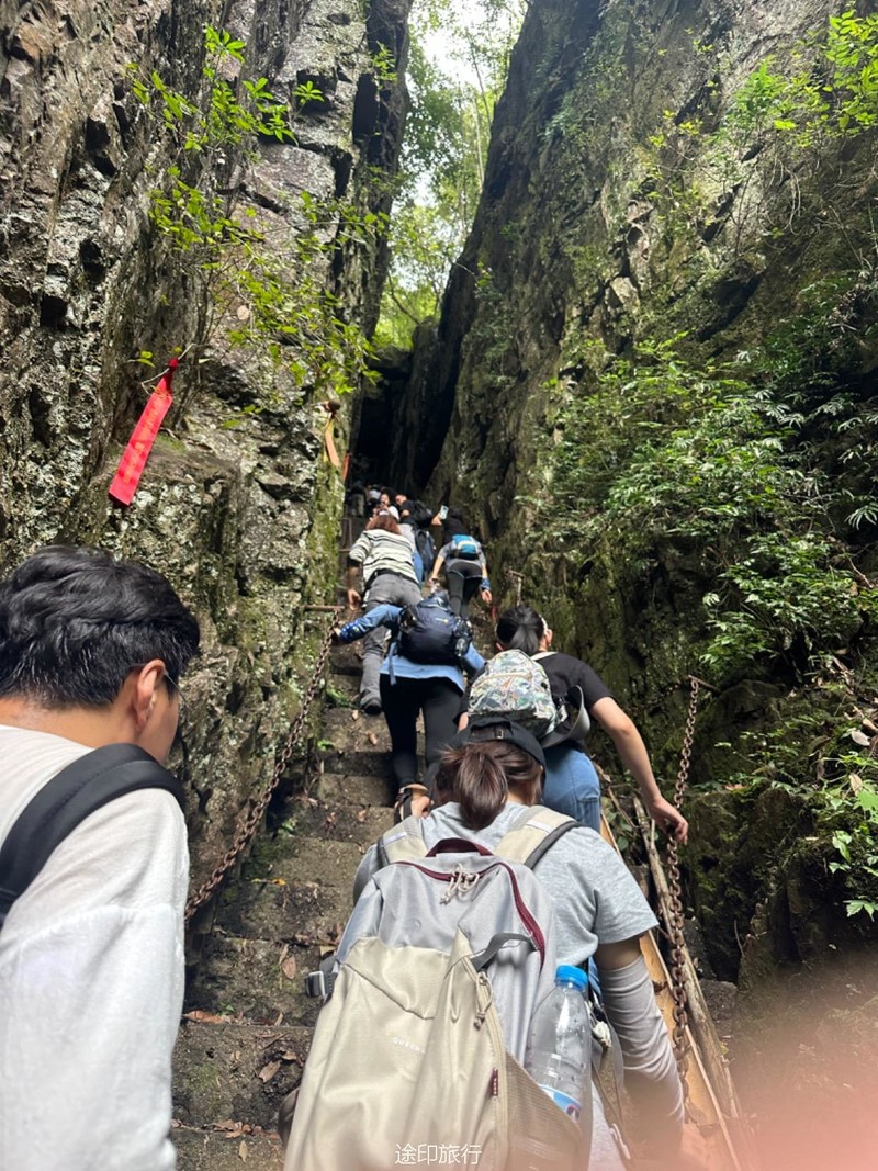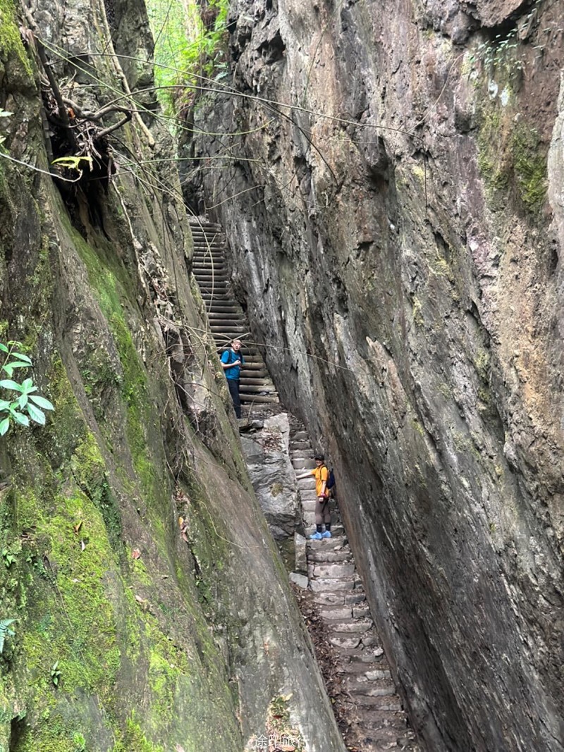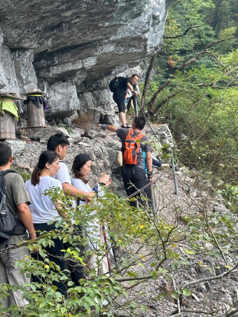 第二天。我们来到了划岩山景区,这里原来是一个景区,不过后来关闭了。但风景一直在这里,我们在洞中穿行,走过了一线天,经过了通天洞,一路有险有趣。最后到了飞鹰道,这里就比较刺激了,飞鹰道是在悬崖边有两条凹进去的道路,原来意味着只有飞鹰考验在这里停留,不过依靠着栏杆和绳索,我们也可以在这里安全通过了。虽然刺激,但并不危险。然后我们就顺利下山了。