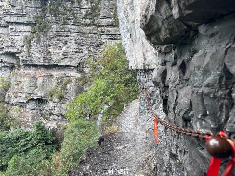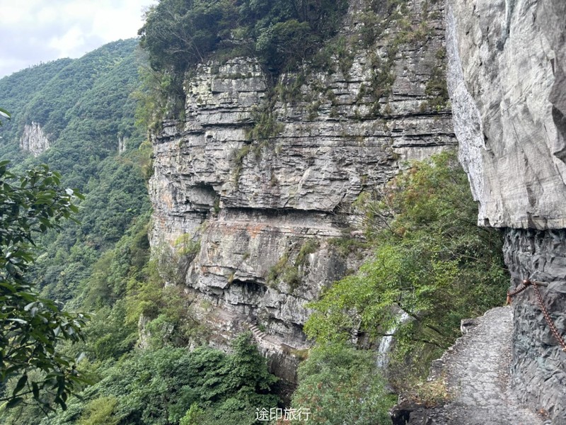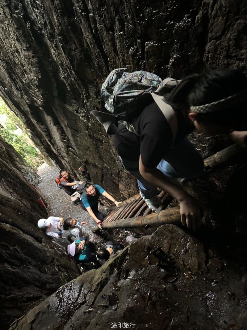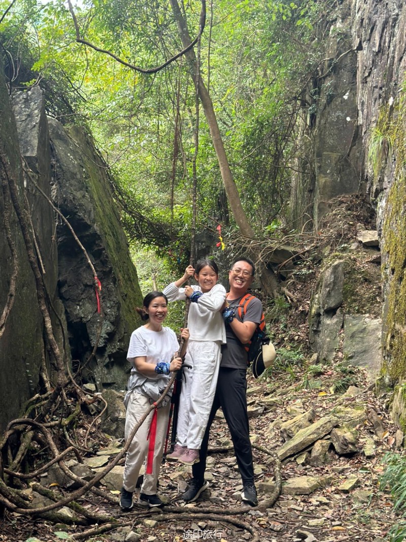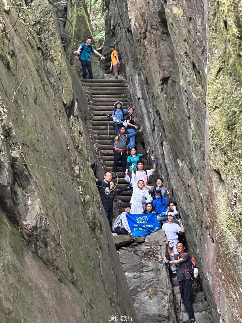 第二天。我们来到了划岩山景区,这里原来是一个景区,不过后来关闭了。但风景一直在这里,我们在洞中穿行,走过了一线天,经过了通天洞,一路有险有趣。最后到了飞鹰道,这里就比较刺激了,飞鹰道是在悬崖边有两条凹进去的道路,原来意味着只有飞鹰考验在这里停留,不过依靠着栏杆和绳索,我们也可以在这里安全通过了。虽然刺激,但并不危险。然后我们就顺利下山了。