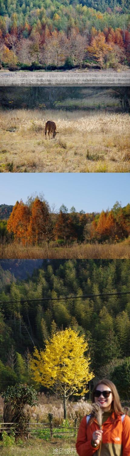 其实塔川景区内的景色并不出彩,所以说,最美的景色不在塔川,而是去塔川的路上。虽然稻田在十天前收割了,但是一路的乌桕树,水杉,红枫,银杏,田园,牛羊的走地鸡,也是相当的美轮美奂和治愈的。