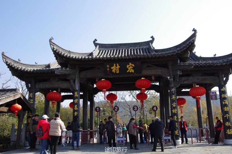 宏村,最初是摄影和美术的圈子里从来不陌生的一个地方。俯瞰是一个牛的形状。整个景区里有南湖,画桥,南湖书院,树人堂,敬修堂,敬德堂,桃源居,月沼等景点。