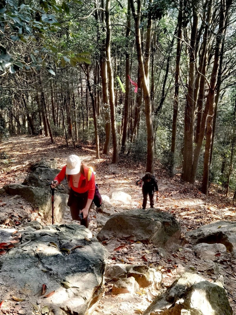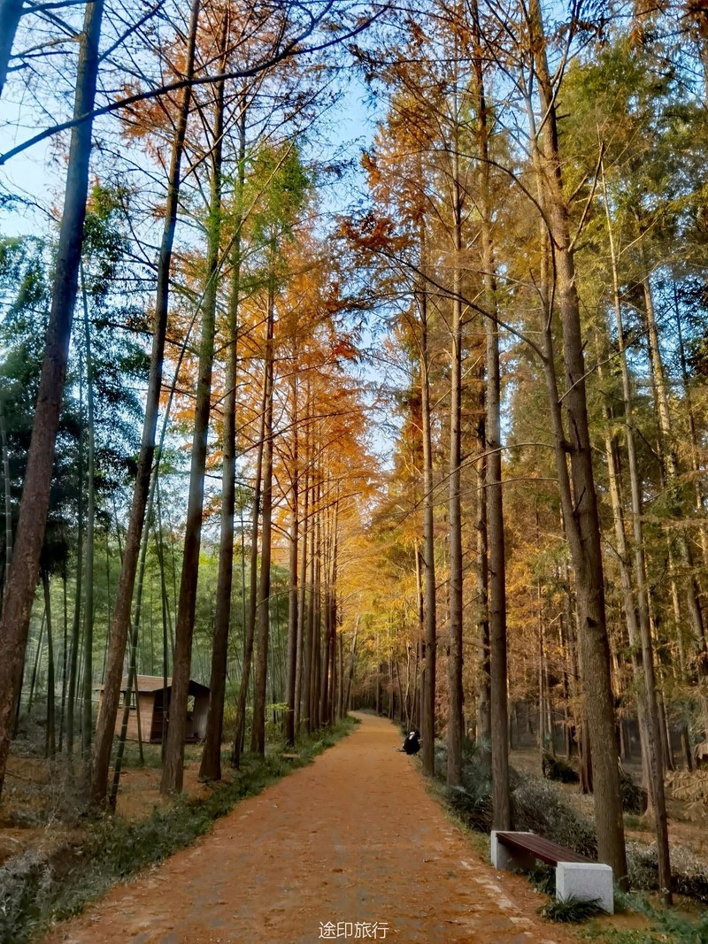 大禹谷位于杭州市余杭区,这里有山有水景色宜人,现在枫叶红了,水杉也开始变色,还有林场其他树种五彩斑斓,也是一个非常适合摄影的地方,向往的生活里的蘑菇屋也在这里拍摄,徒步的起点是甘岭水库,我们走的是一条环线,从水库大坝登娘娘山,然后从长乐林场下来,在湖边远看娘娘山,很像是缩小版的富士山的感觉