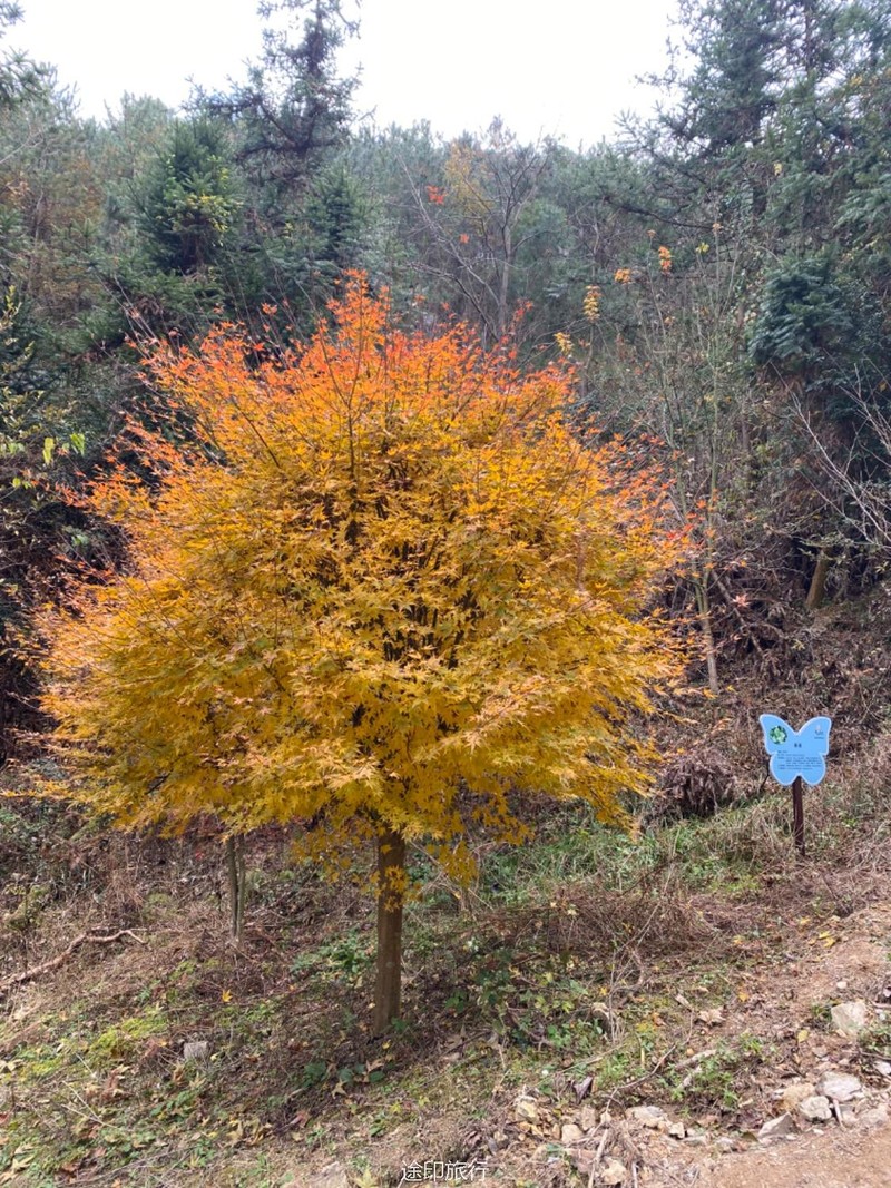 深秋时节,栖霞坑古道两边,漫山遍野的红枫与五颜六色的山景相映成趣。沿着小溪出发,走到红枫古道时变得狭窄,而且十分陡峭,风景也随之优美起来,爬上山岗整个山头都被染成了红色,夹在绿色山林中,展现了大自然秋天最美的诗情画意。走在栖霞坑古道上,无论是染红的枫叶,还是满树泛黄的银杏,铺满古道的松针,成了秋色图中的主角。古道上的颜色丰富多彩,红的,黄的,绿的,层层叠叠。
