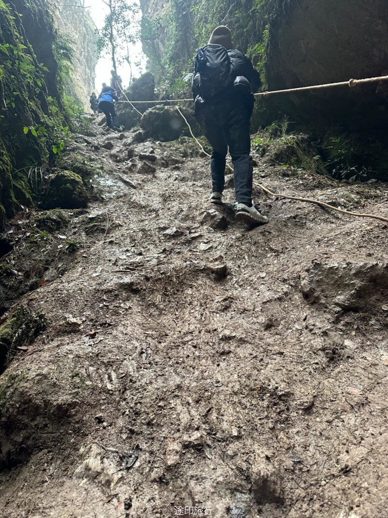 这次我们来到苏州徒步,顺利地于9:50到达徒步起点,时间真是足够,开玩笑的说:没打过这么富裕的仗。 开始徒步,很快就给了我们一个下马亏,开始下毛毛雨,并且岔路特别多。 我们好不容易来到绝情谷,结果人很多,路很陡,需要借助绳子导致速度很慢。