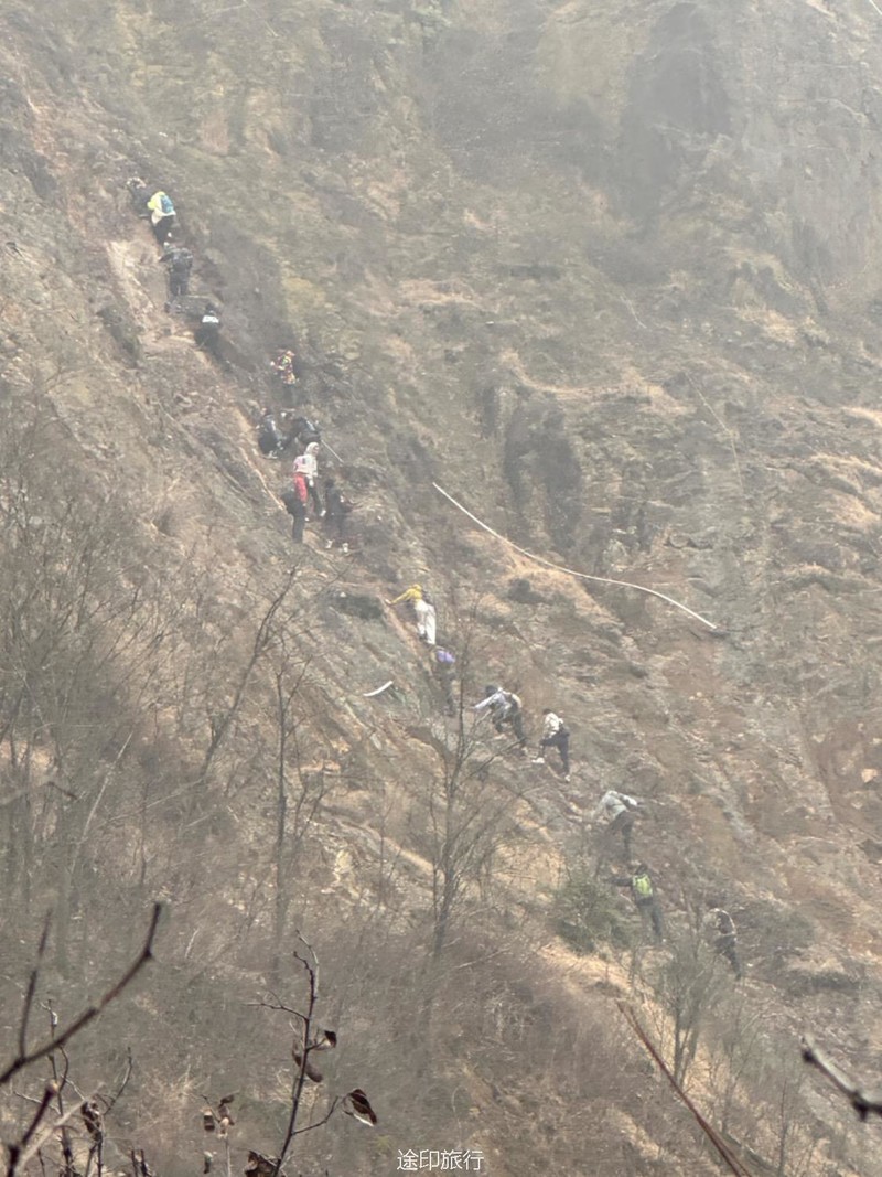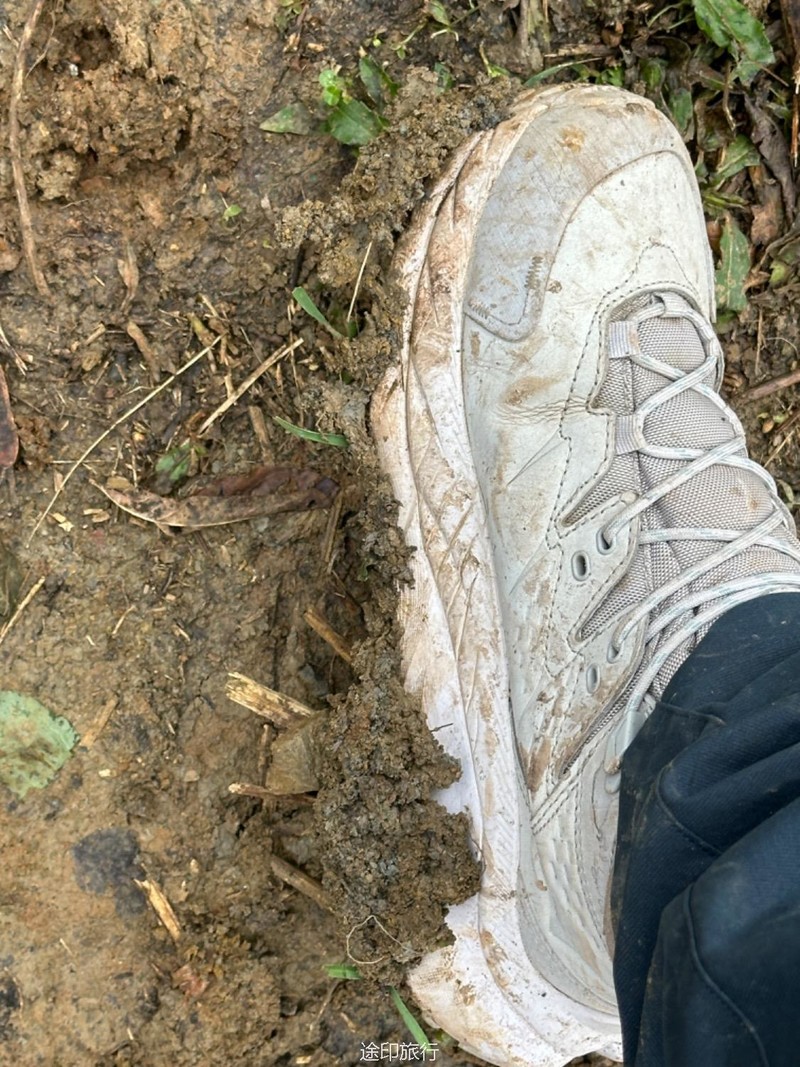 走完翡翠湖,下了陡坡,绕过寺庙,就来到钉子崖下面,这里非常陡,加上刚下了雨,鞋子泥巴很多,导致爬上去非常困难,最后大概30-40米几乎垂直,全靠绳子拉着了。这是目前带队中遇到最难的一种情况了。还好队友都很努力,最后完成了这一次挑战。
