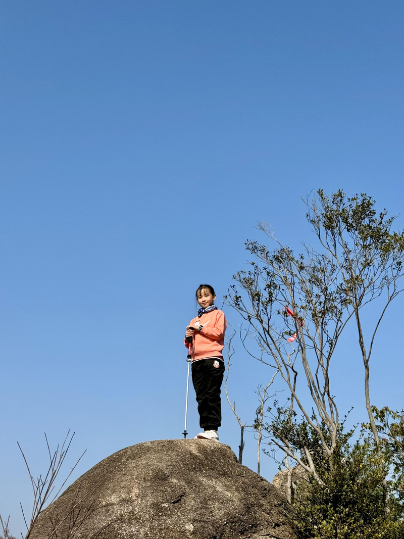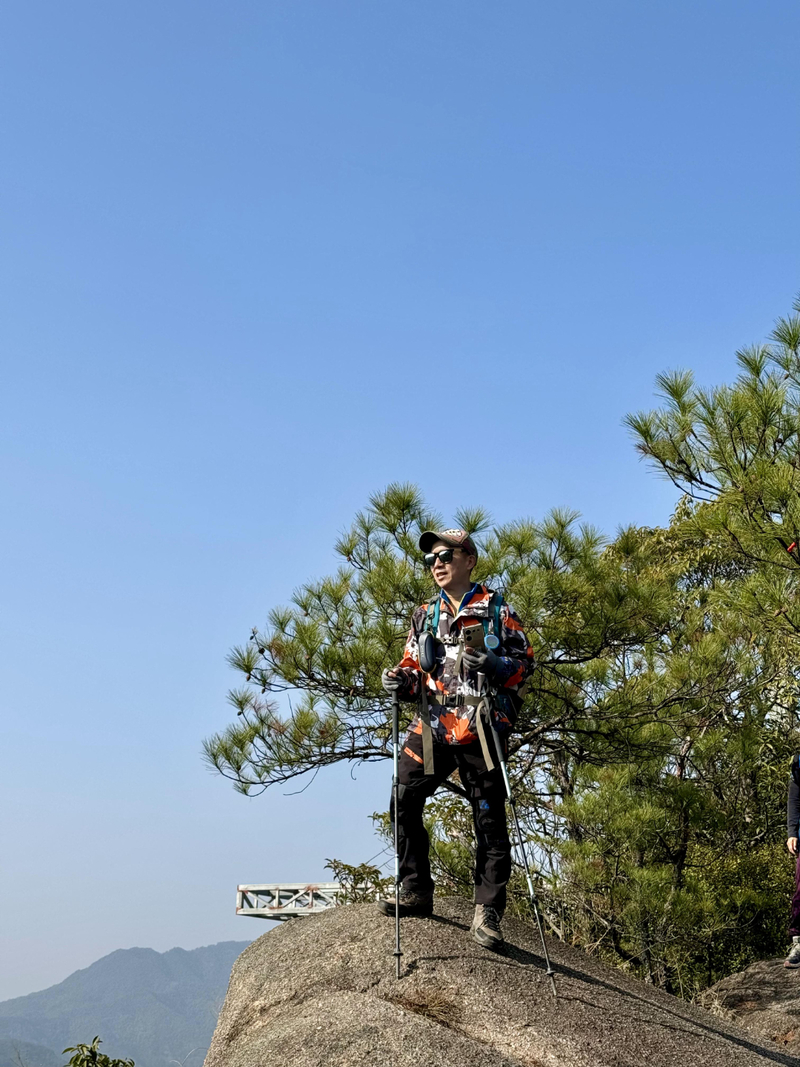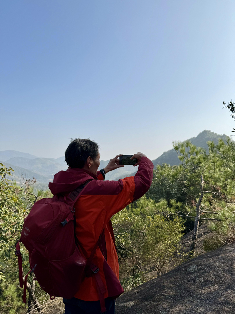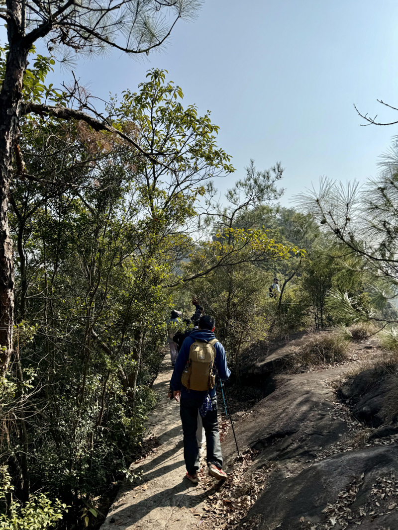到达徒步起点后,我们先简单做了热身运动,然后出发。徒步起点是走一段骑行道,后是一段400多米近50度的台阶爬升,多少让人望而生怯。但是这段是对体力的考验,可以控制好自己的节奏,有序前进就好,后续继续走山路,大概1个小时40分钟后我们到达观景平台,这里可以看到猴子观海等奇石,同时还有近处的石头可拍照,同时这里可在这吃路餐,补充体力。